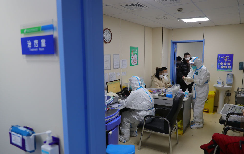 12月15日,值班医生在发热门诊为患者治疗。新华社记者 杨青 摄