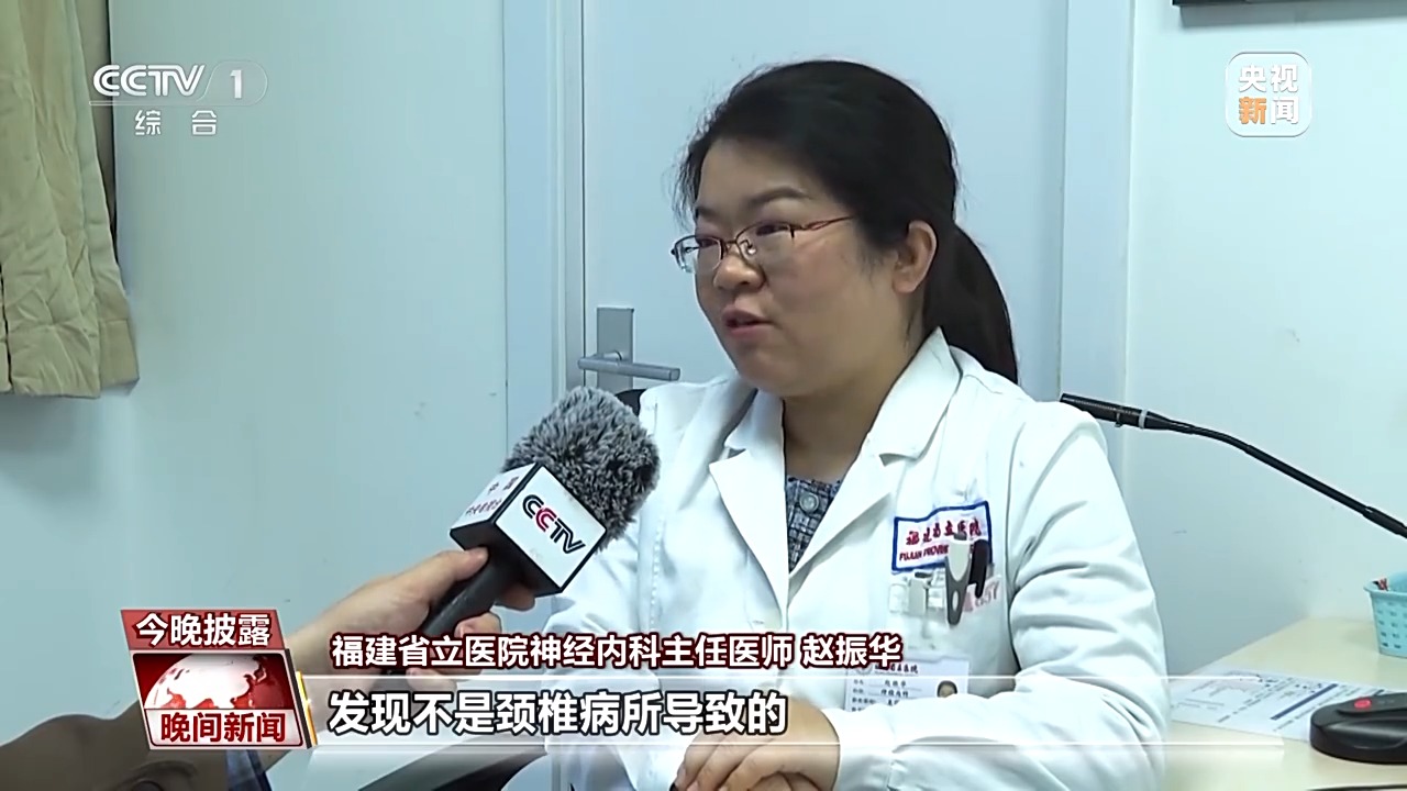 福建省立医院神经内科主任医师 赵振华:骨科医生发现患者的情况不是颈椎病导致的,患者就到我的门诊来,我发现她是肌强直导致的驼背。