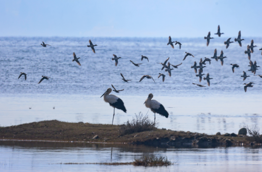 12月28日,四川省凉山州冕宁县林业和草原局工作人员在该县宁源湖开展全国越冬候鸟同步监测工作时,发现两只被称为“鸟界国宝”的东方白鹳,这是首次在这片区域发现东方白鹳的踪迹。