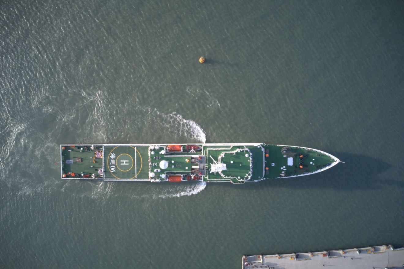 “海巡06”轮由武昌船舶重工集团有限公司建造,船长128米,型宽16米,型深7.9米,满载排水量6600吨,主推进系统总功率13920千瓦,最高航速23节,续航力10000海里,自持力60天,能够到达全球除南北极以外的所有海域。该轮能在12级风、9级海况下进行深远海巡航,在11级风、7级海况下开展海事执法活动。搭载船用北斗系统、GPS全球定位系统和多星联动的卫星通信设备,设有计算、存储和通信功能强大的网络数据中心,具有动态感知、监测预警、信息处理、综合指挥等能力,可作为独立、立体、移动的海事行政执法单元执行海上巡视、海事监管、海上交通事故调查处理和船舶污染监测等任务,也可与通信指挥车、海事巡查车、其他执法船艇、直升机、无人机以及VTS(船舶交通管理系统)、AIS(船舶自动识别系统)协同配合,是构建“陆海空天”一体化综合监管和快速反应系统的重要组成部分。