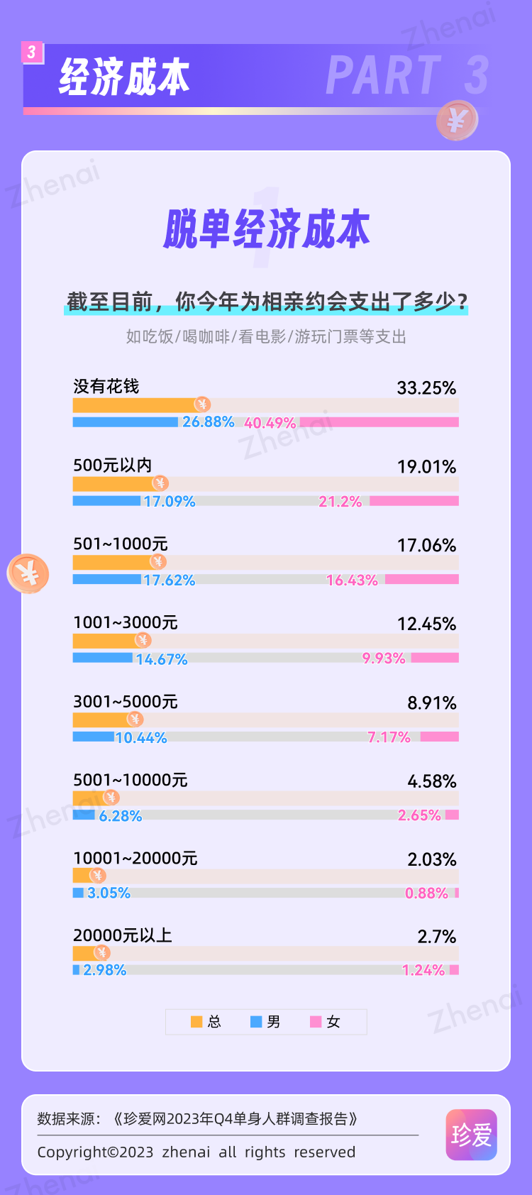 ♥ 珍爱网调研:男性普遍比女性相亲约会支出更多,但仍有11.28%男性不愿在追求心仪对象时花钱