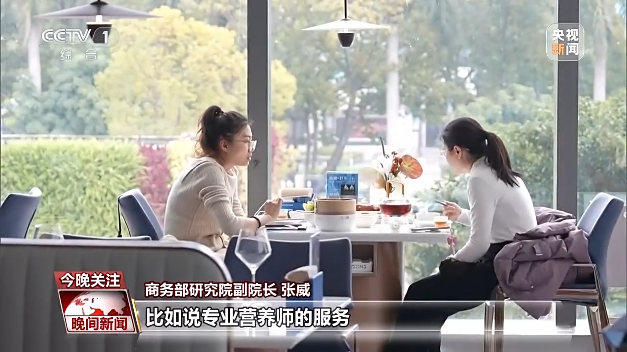 商务部研究院副院长 张威:要吃出营养,吃出健康,而在这些方面可能还需要更多的,比如说专业营养师的服务,或者说更专业的健康营养知识的普及等,还需要更多综合的服务支撑体系来更好地支撑这部分消费的发展。