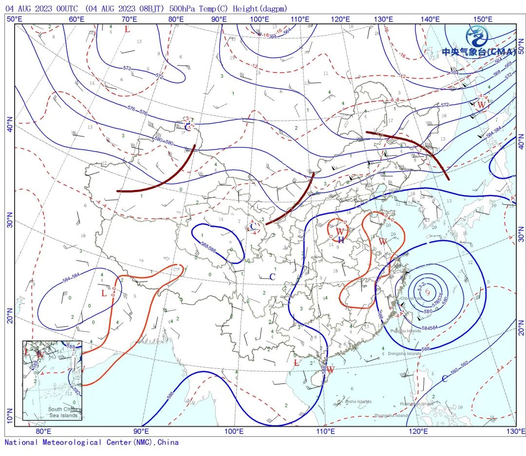 8月4日8时500百帕天气图 (央广网发 来源:中央气象台网站)