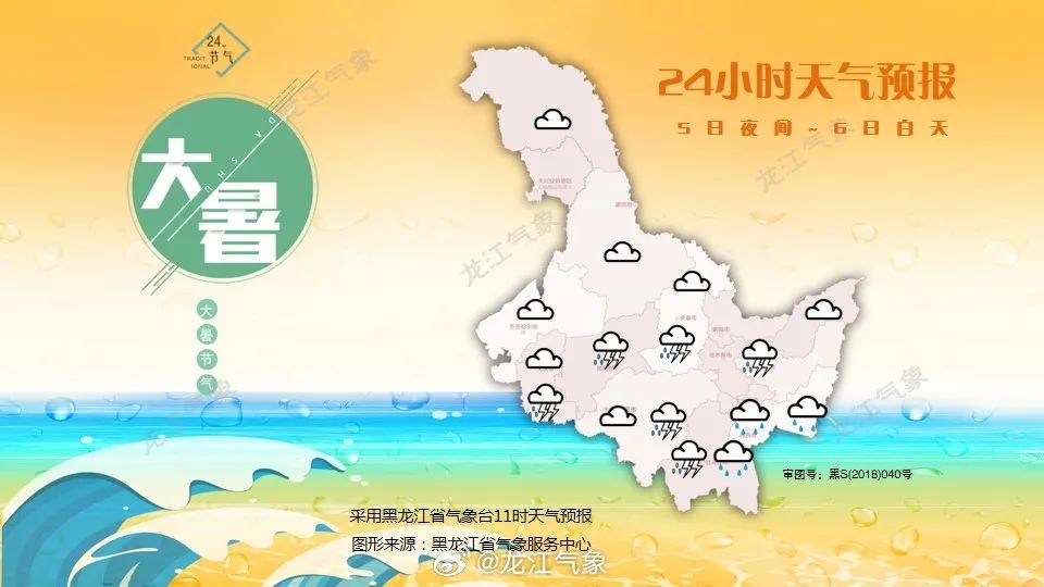 其中,5日伊春南部、绥化东北部、哈尔滨北部、鸡西、牡丹江东北部有短时强降水、雷雨大风、小冰雹等强对流天气,最大小时雨量20~40毫米,阵风7~8级。