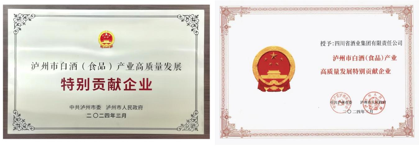 3月15日,2024年泸州市白酒(食品)产业高质量发展大会在南苑会议中心召开,川酒集团荣获泸州市白酒(食品)产业高质量发展特别贡献企业奖,已连续三次荣获泸州市委、市政府颁发的白酒产业最高荣誉。川酒集团旗下川酒集团酱酒有限公司荣获突出贡献企业,川酒集团自然香酒业有限公司荣获优秀示范企业。