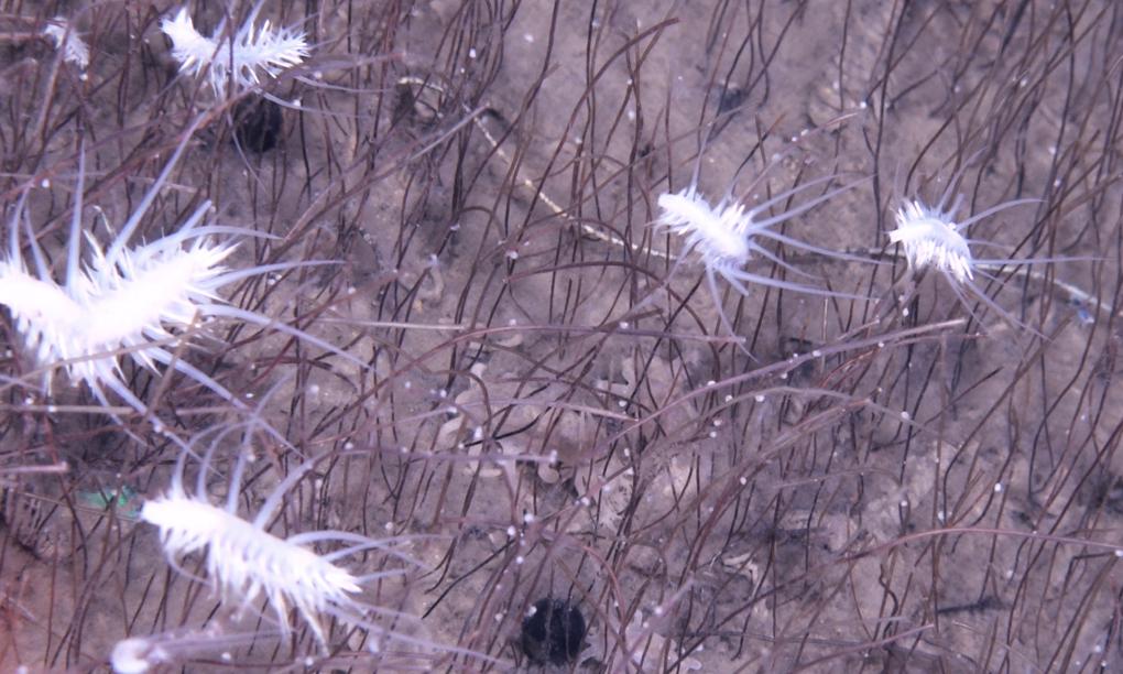 在堪察加海沟拍摄的管状蠕虫。(中国科学院深海科学与工程研究所供图)