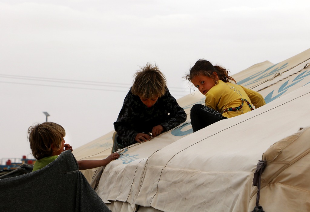 这是5月28日在叙利亚哈塞克省拍摄的霍尔难民营内的孩子们。新华社发
