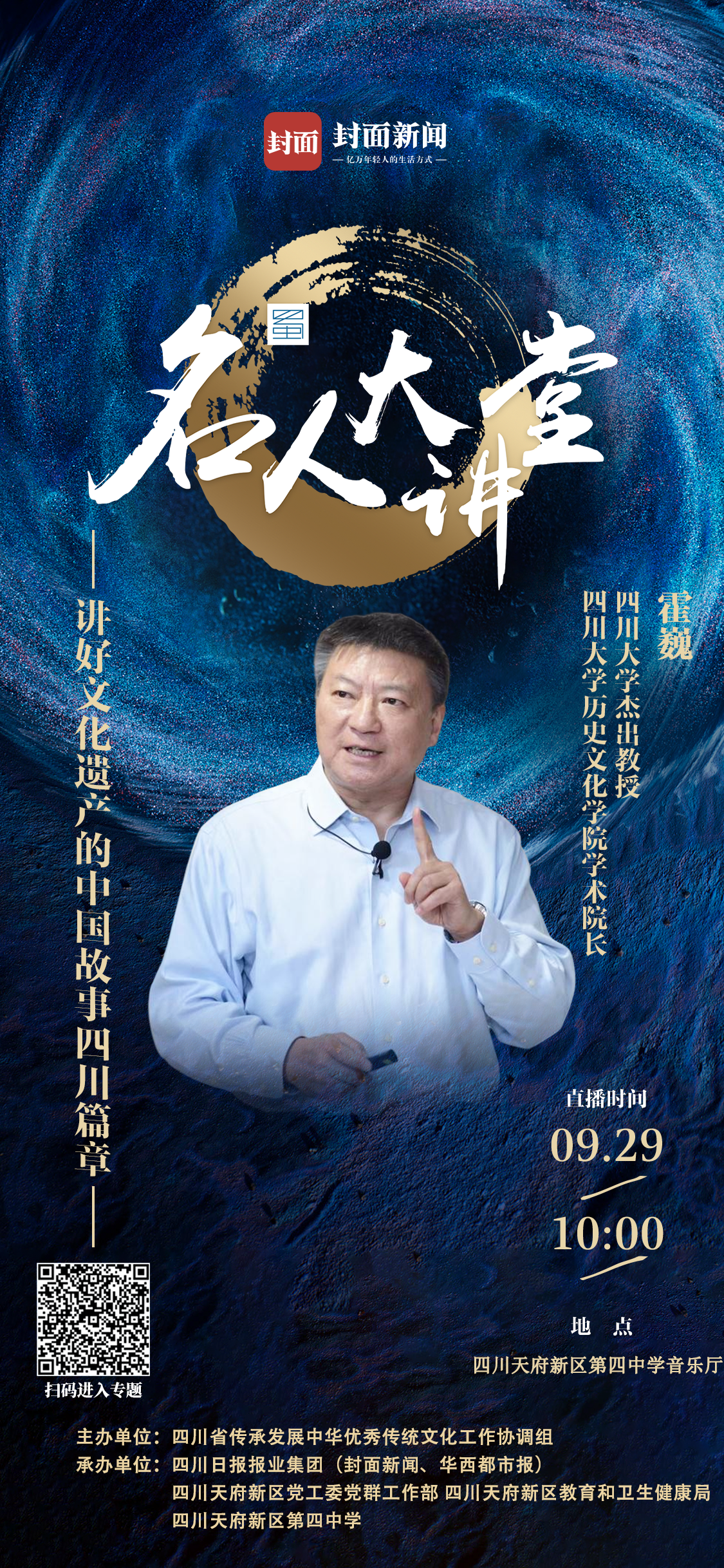 9月29日上午10点,四川大学杰出教授、四川大学历史文化学院学术院长霍巍将做客2025名人大讲堂,在四川天府新区第四中学开启“遗产保护”季首场讲座。届时,他将以《讲好文化遗产的中国故事四川篇章》为题,揭示四川文化遗产背后承载的中华文明基因。