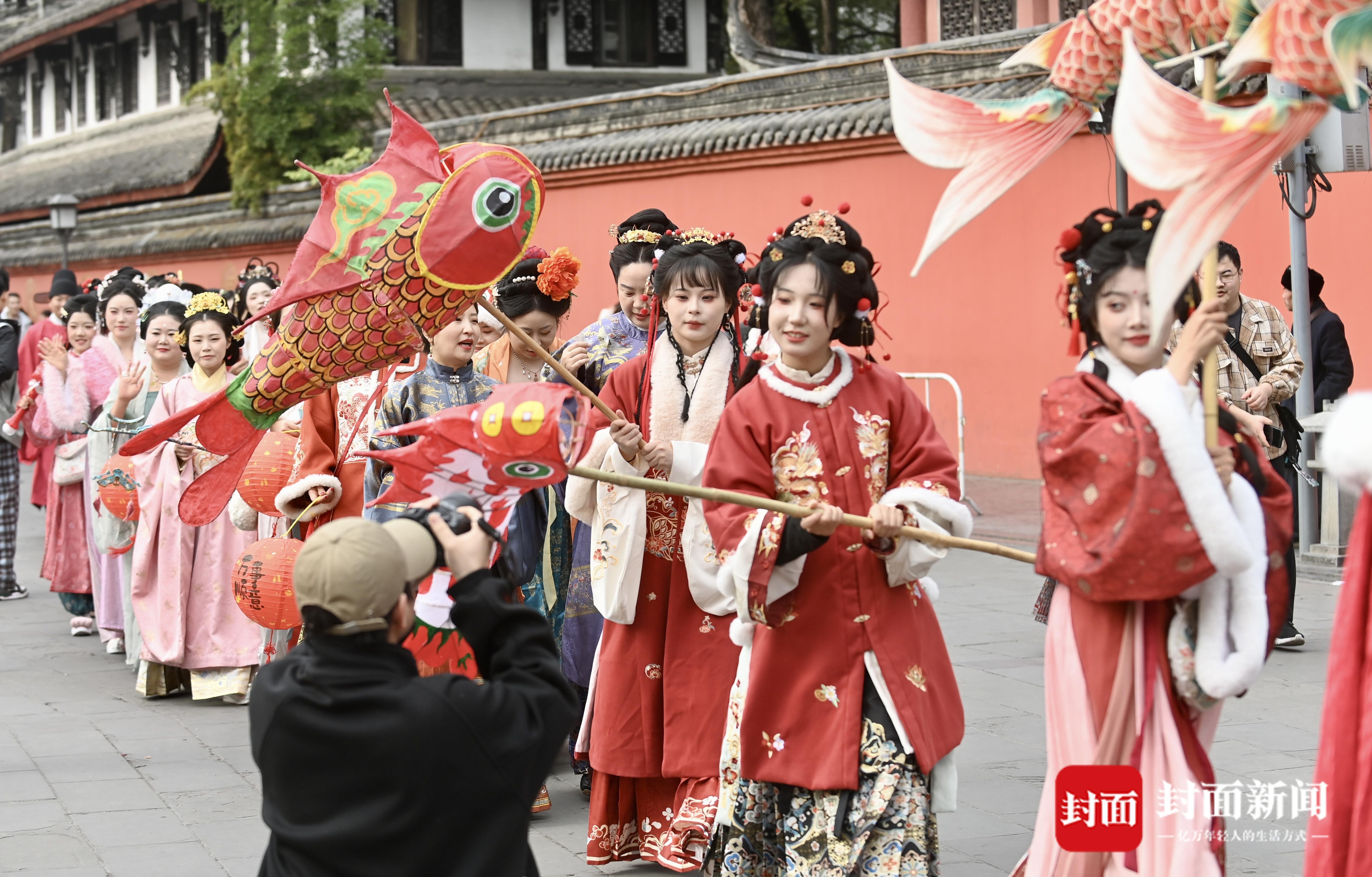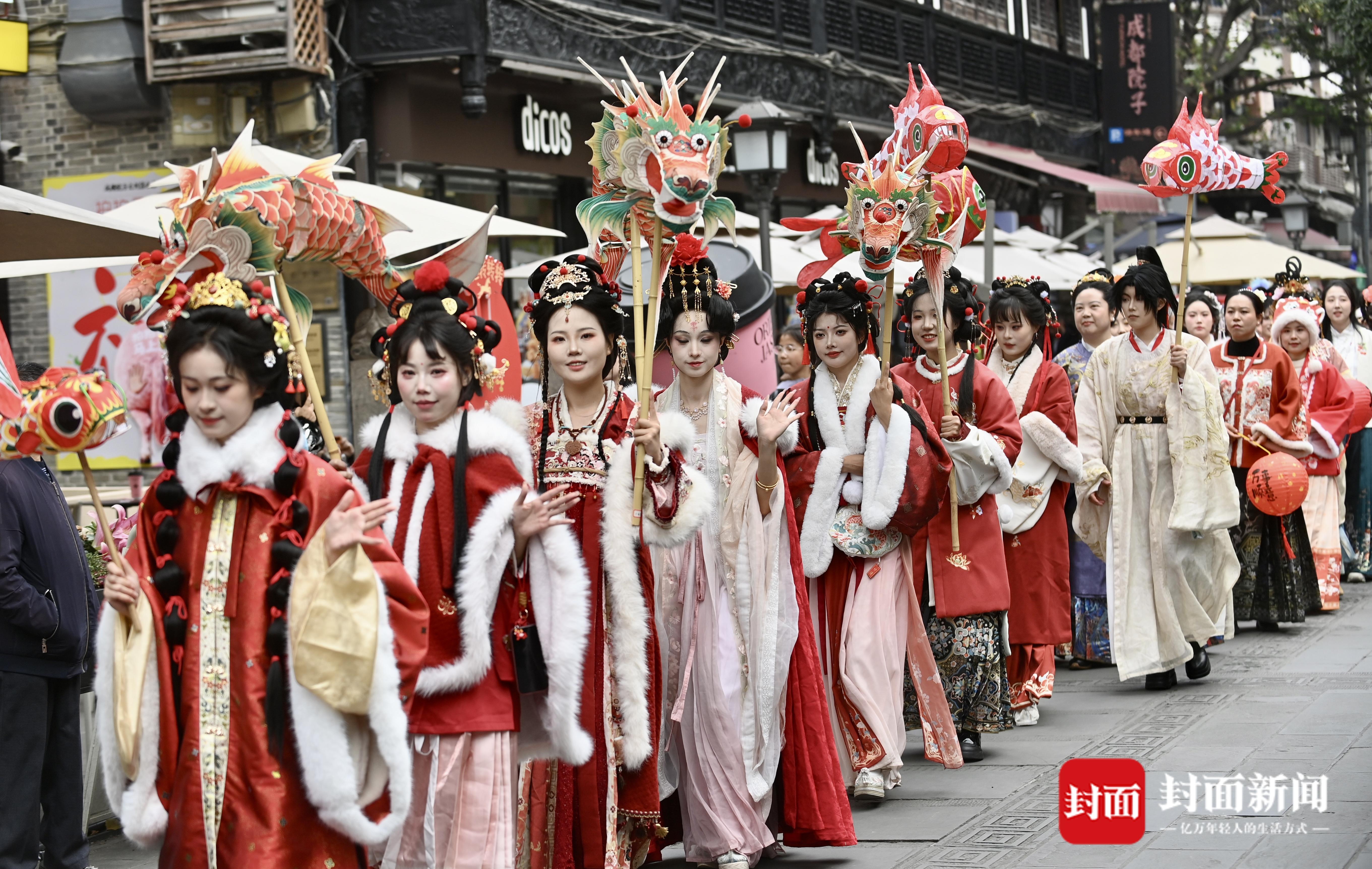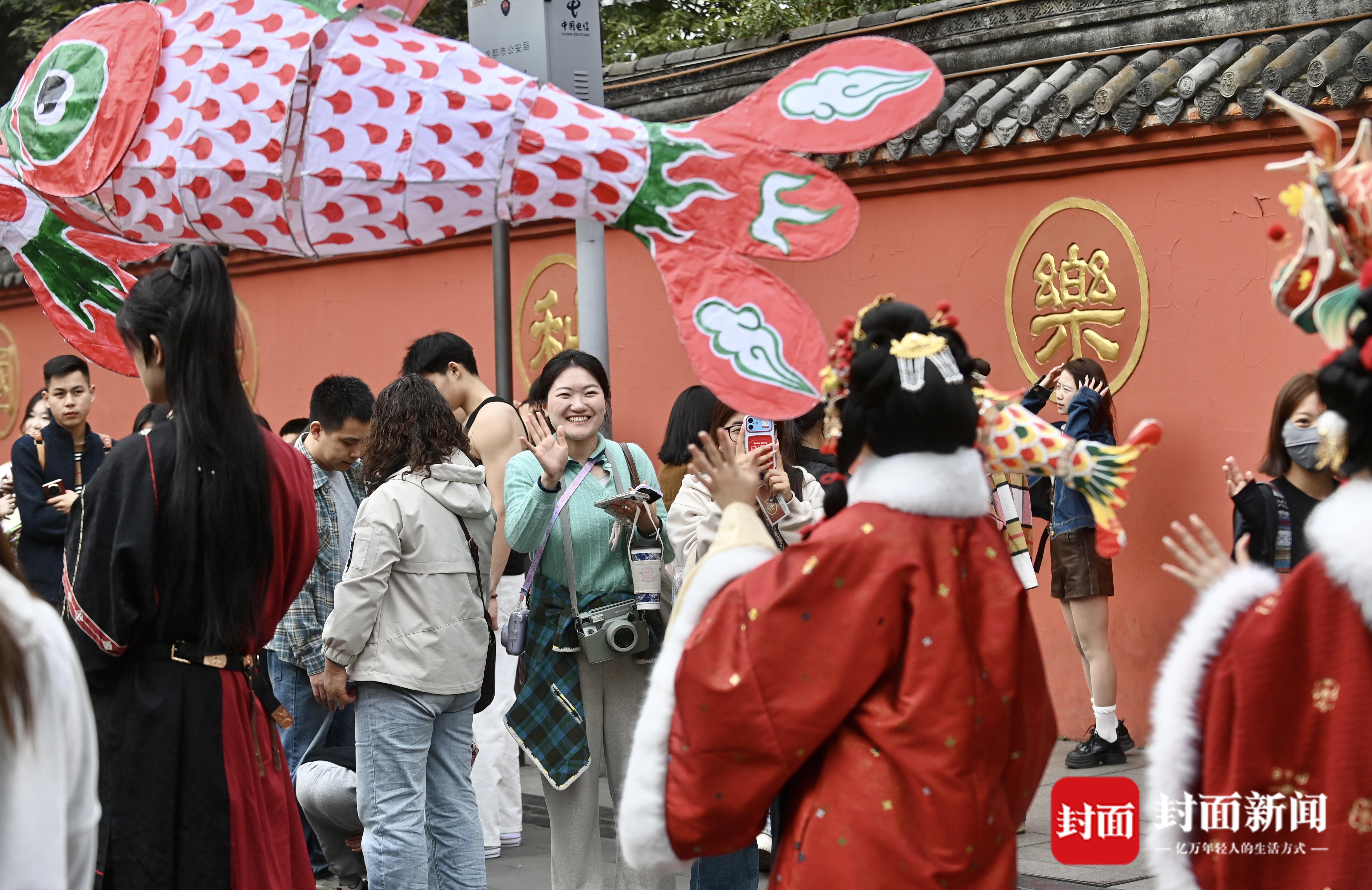 成都文殊坊街区花灯巡游闹元宵。