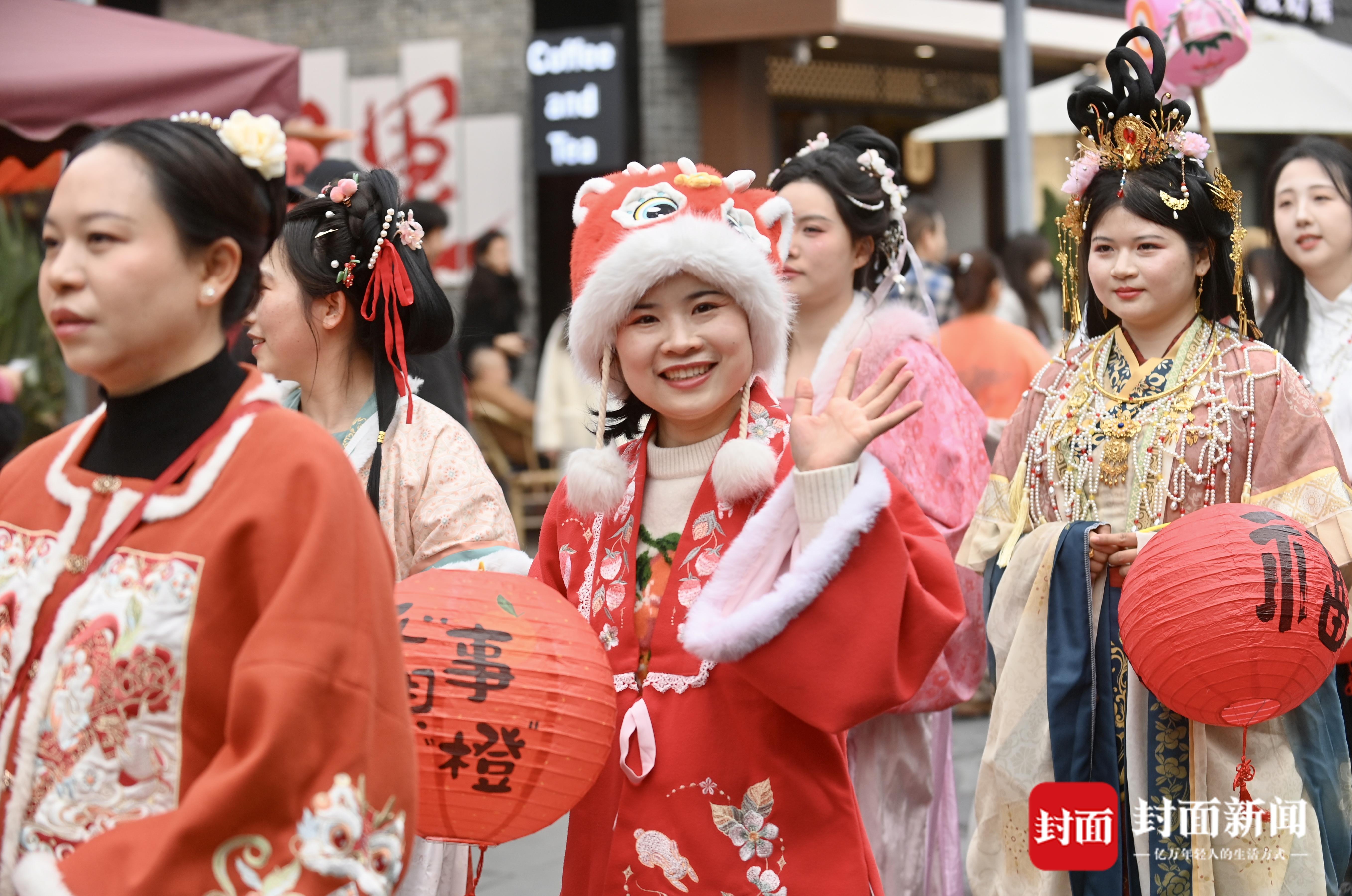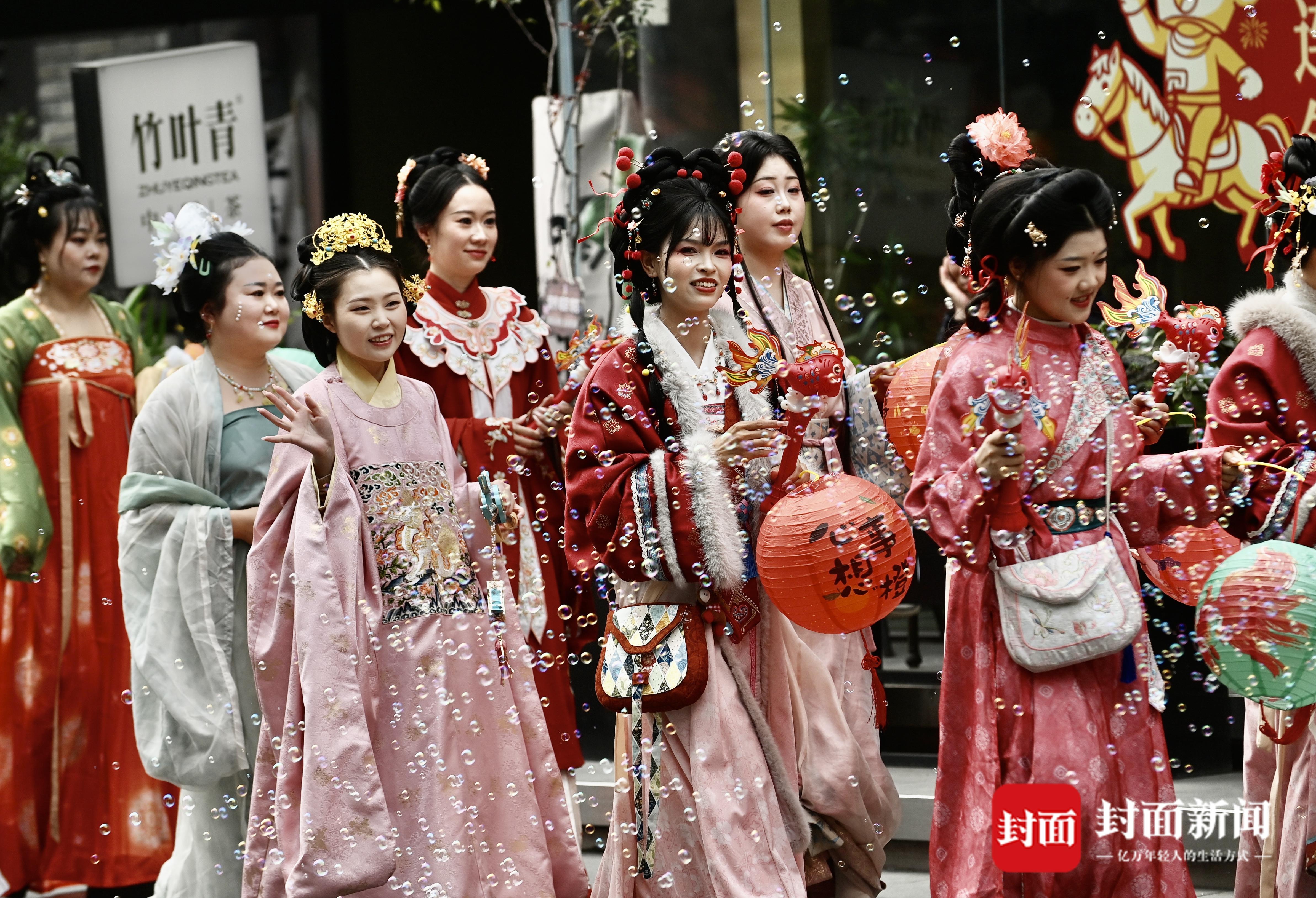3月3日,恰逢正月十五元宵节,成都文殊坊街区处处洋溢着浓浓的节日氛围。身穿传统服饰、手提花灯的巡游队伍穿行在街区,一路为游客们送上节日的祝福,大家一起欢欢喜喜过元宵。