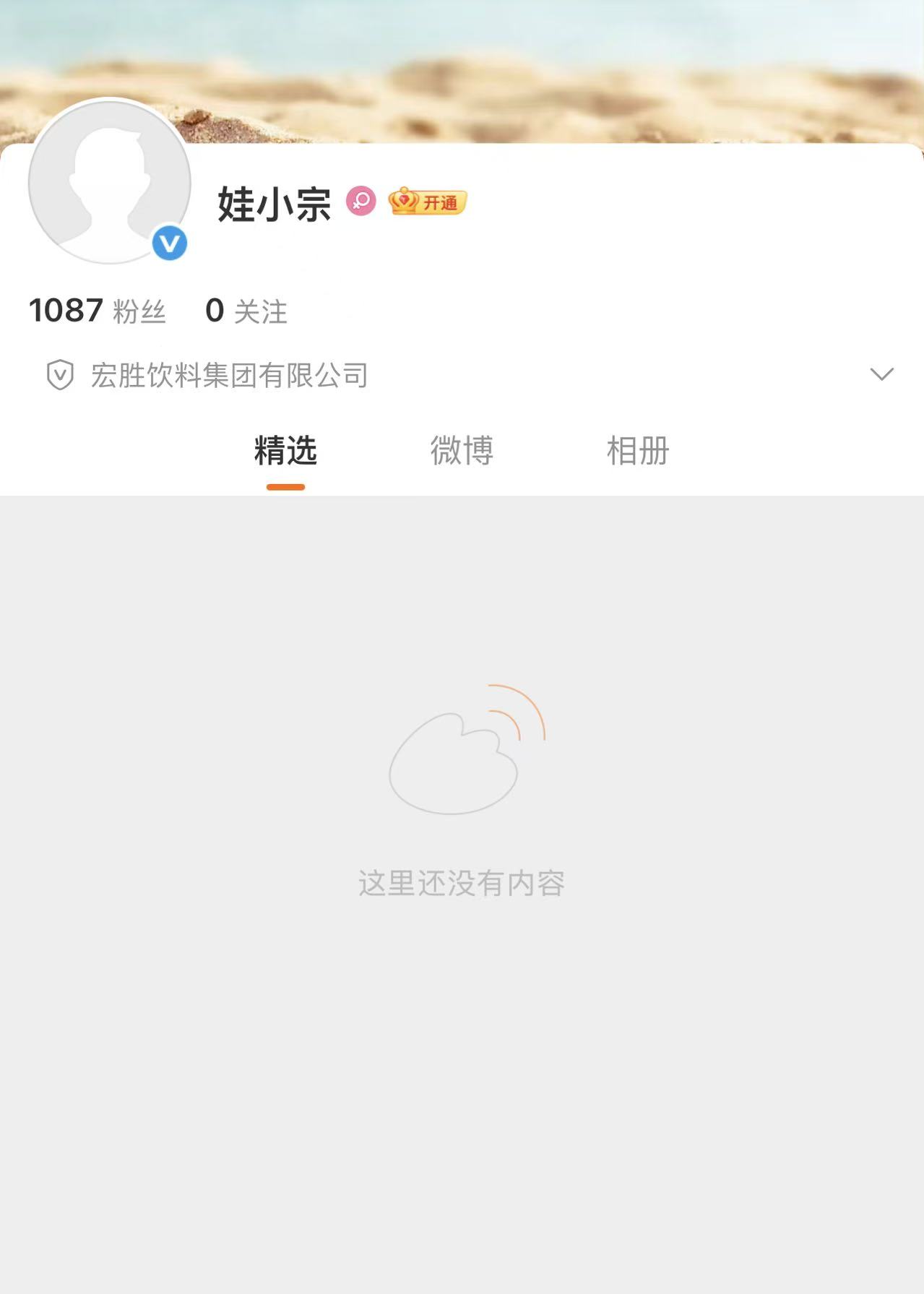 记者查询发现,“娃小宗”已在微博平台注册账号,认证企业为宏胜饮料集团有限公司,截至发稿,目前粉丝数为1087人,但是头像空缺。今年2月,宗馥莉就抢注了“娃小宗”全品类商标,5月悄悄推出相关无糖茶产品,9月还在西安砸10亿建了新生产基地,年产能能到80万吨。