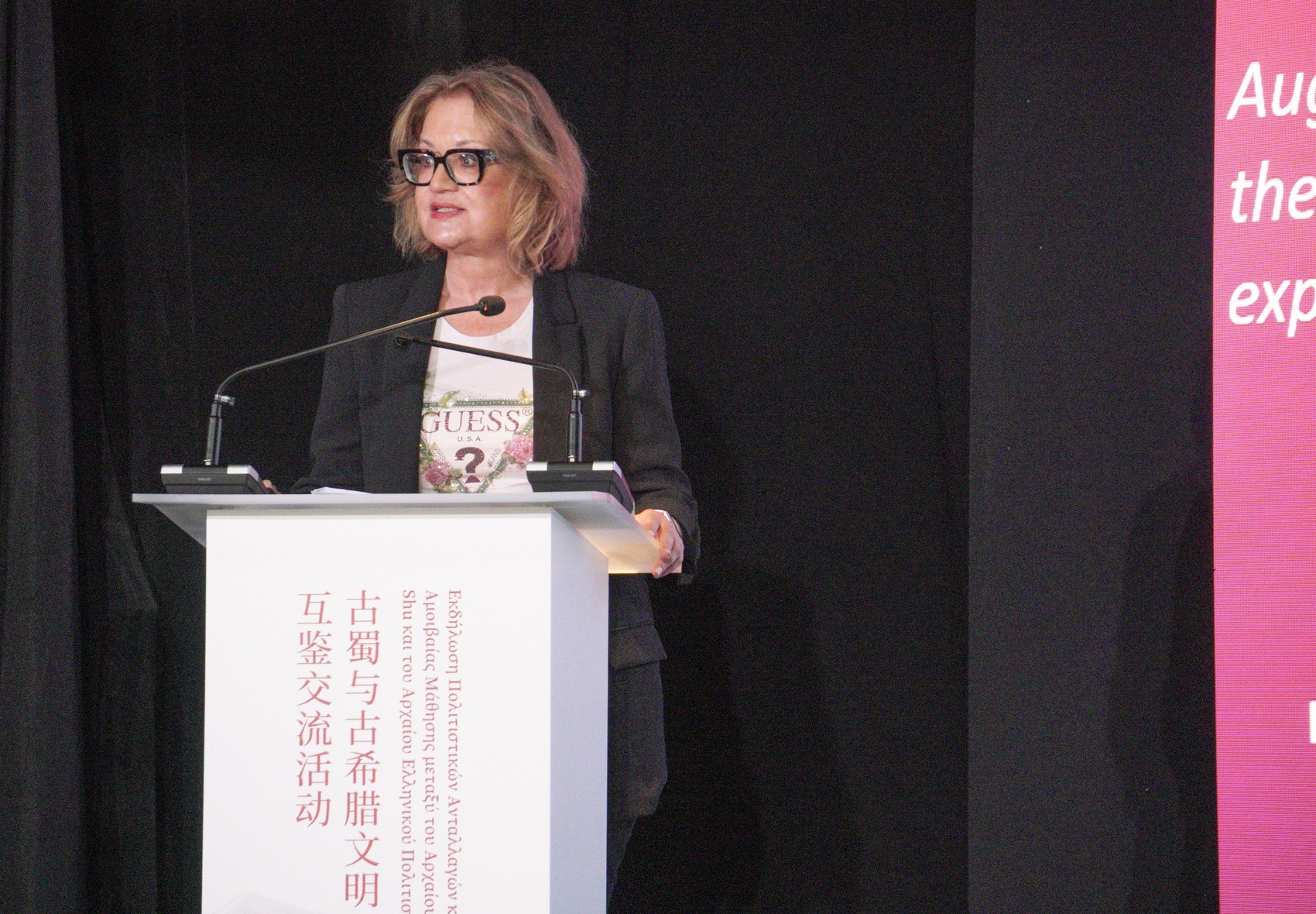 北京时间5月13日下午,古蜀与古希腊文明互鉴交流活动在希腊雅典举行。围绕“新技术视角下的古希腊文化阐释”这一主题,考古学博士、比雷埃夫斯及诸岛文物管理局局长、希腊国家考古博物馆前馆长安娜·瓦西莉基·卡拉帕纳吉奥图开展现场分享。