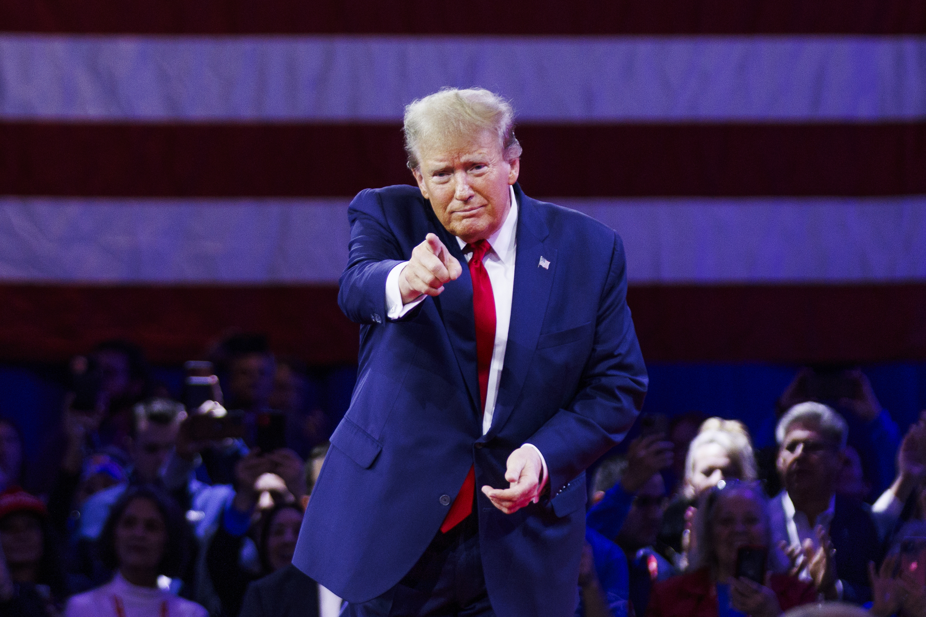 2月24日,在美国马里兰州国家港湾,特朗普在保守派政治行动会议上讲话。新华社发(亚伦摄)