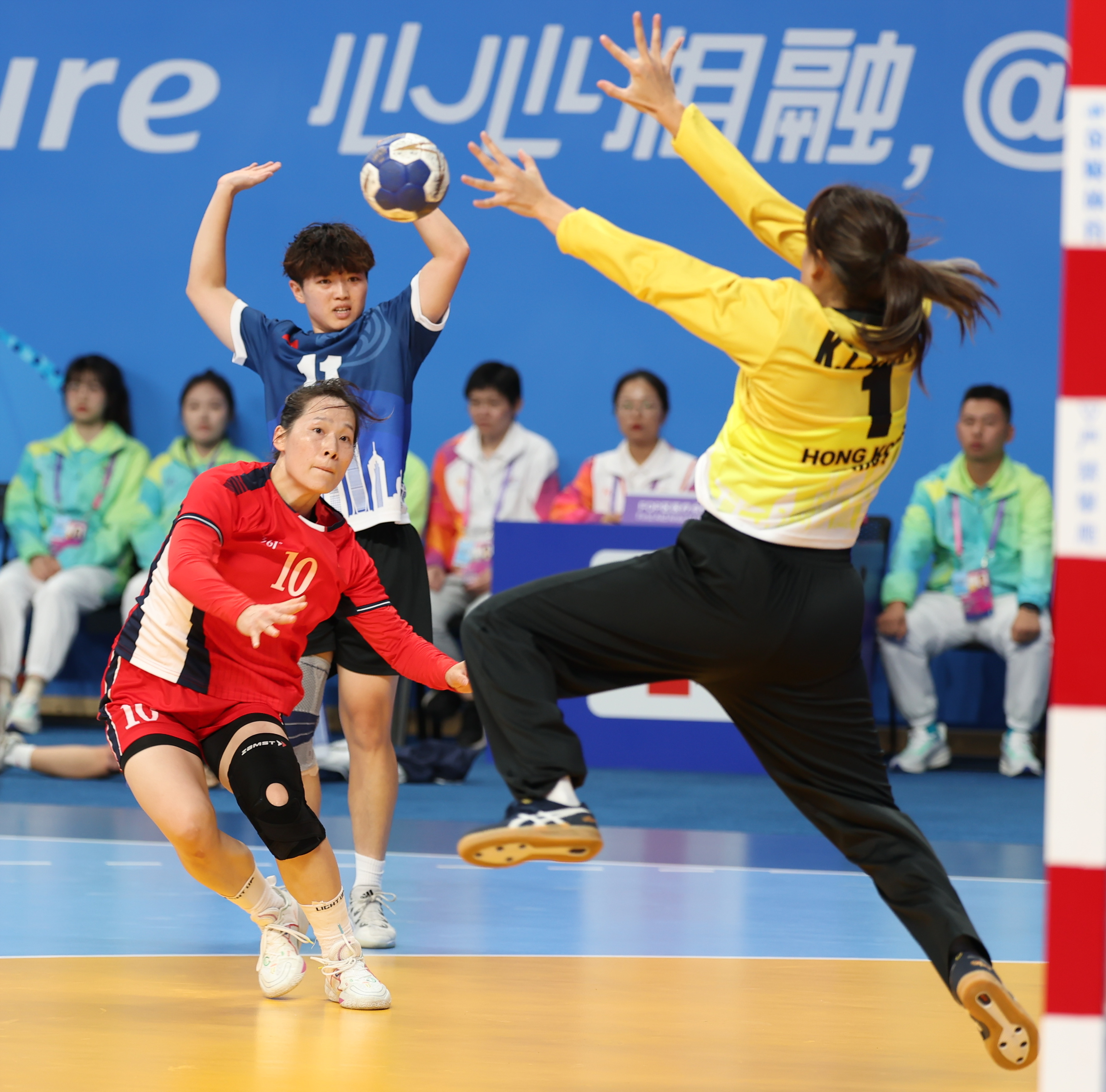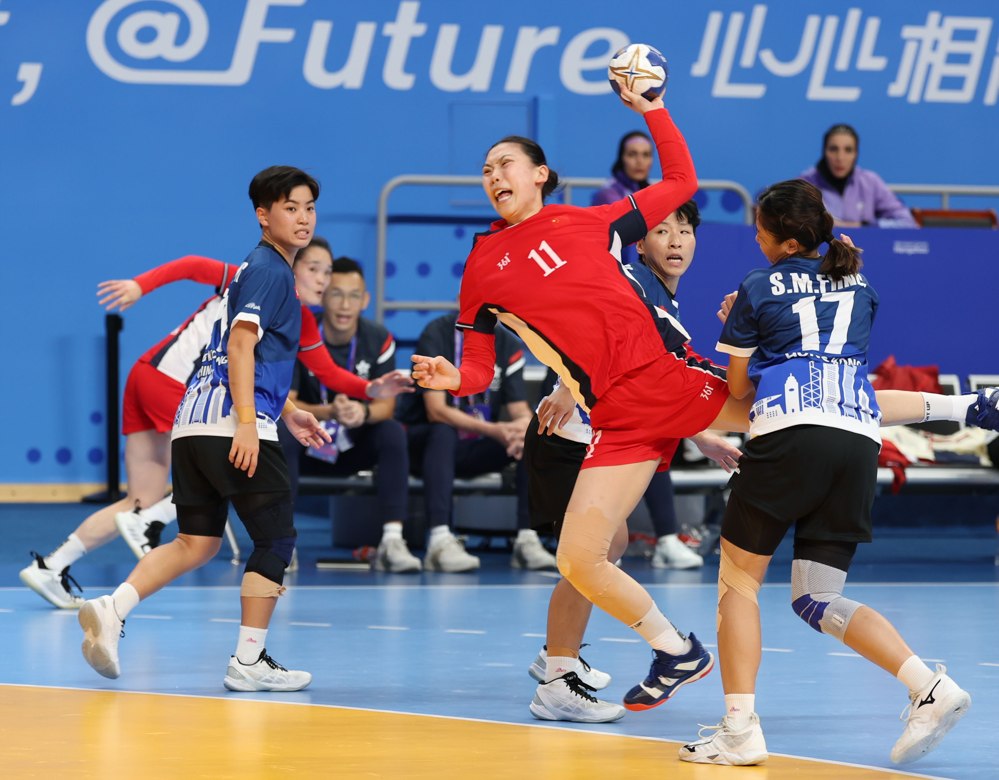 中国女队当天在浙江师范大学(萧山校区)体育馆迎战中国香港队。此役中国队将重兵投入阵地战中,中国香港队则通过快攻伺机得分,半场结束中国队以17:11领先。下半场优势仍在中国队一边,多点开花锁定胜局。