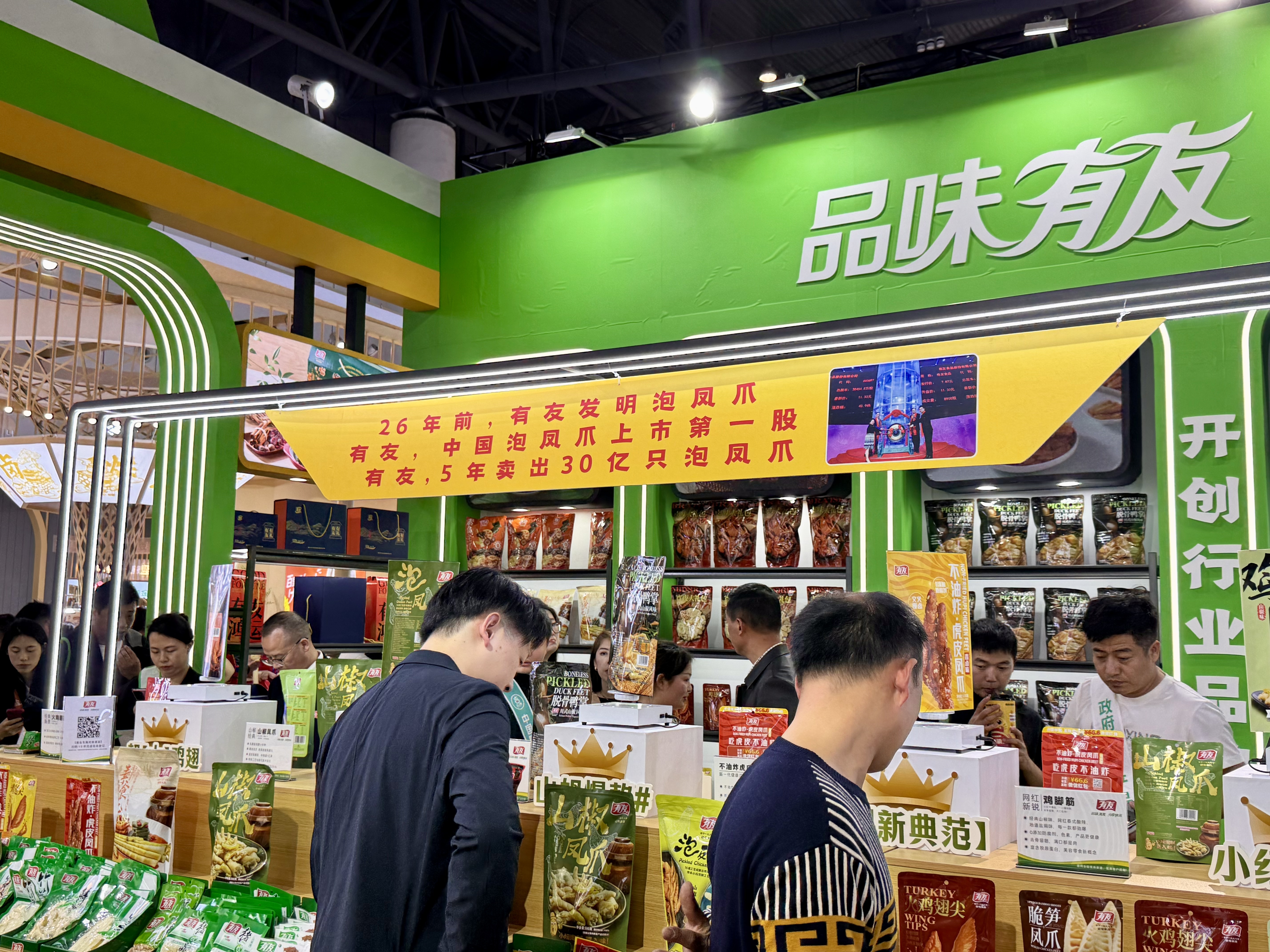 “泡椒凤爪第一股”有友食品同样是陪伴80、90后成长的国民品牌,除了经典的泡椒凤爪,一款名为“不油炸虎皮凤爪”的产品也颇具辨识度。工作人员表示,该产品通过高温空气实现美拉德反应,让鸡爪出现虎皮状纹理,而且“0添加防腐剂”,因此更健康。