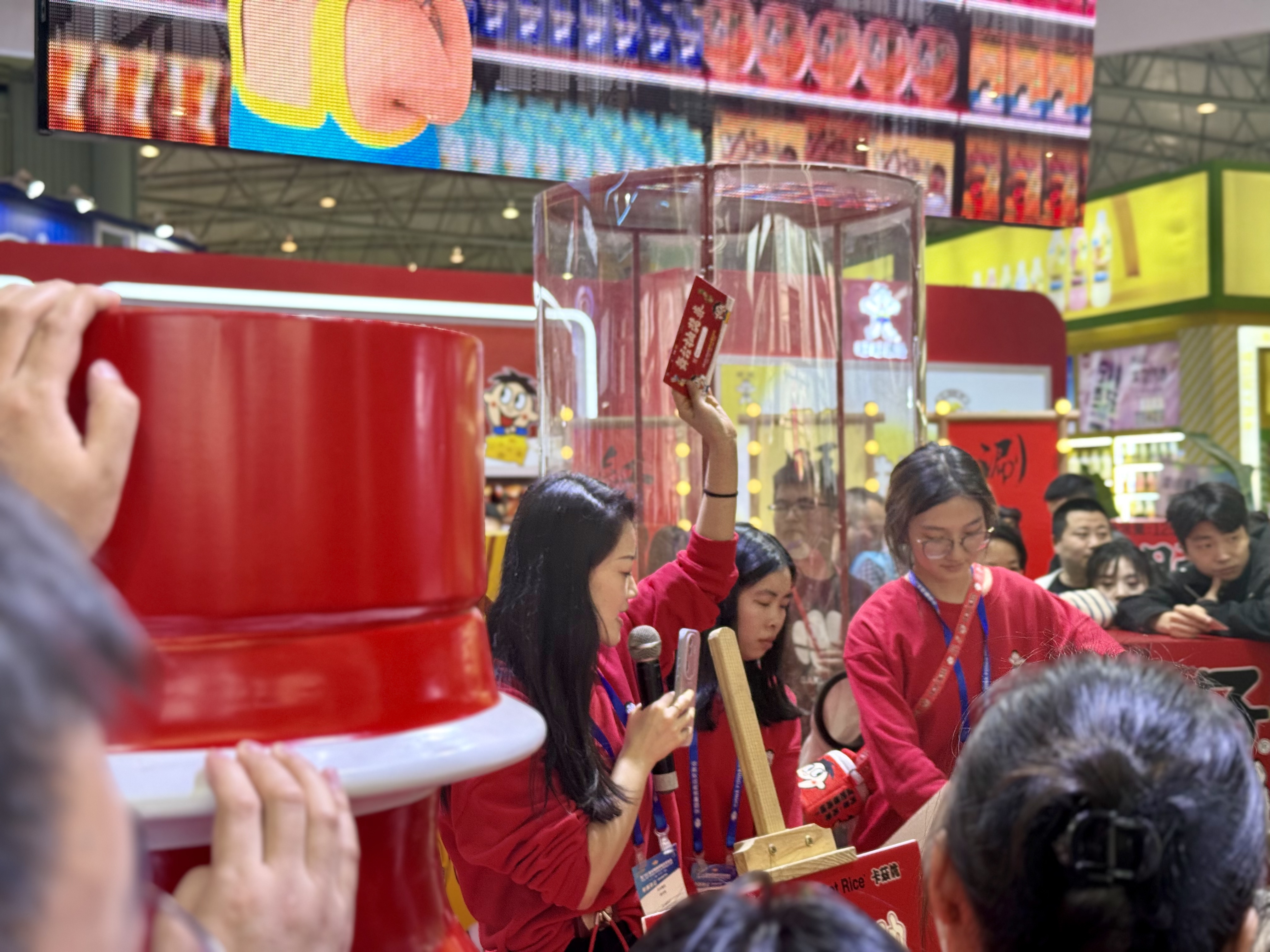 舞台区以巨型旺仔风味酸奶、卡兹脆粟米球粟米条等产品打造艺术装置,极具视觉冲击力。在此,消费者可以参加趣味抽奖。“通过这样的形式,构建起品牌与观众对话的活力枢纽,实现产品展示、体验互动与品牌传播的多维融合。”旺旺品牌工作人员说。