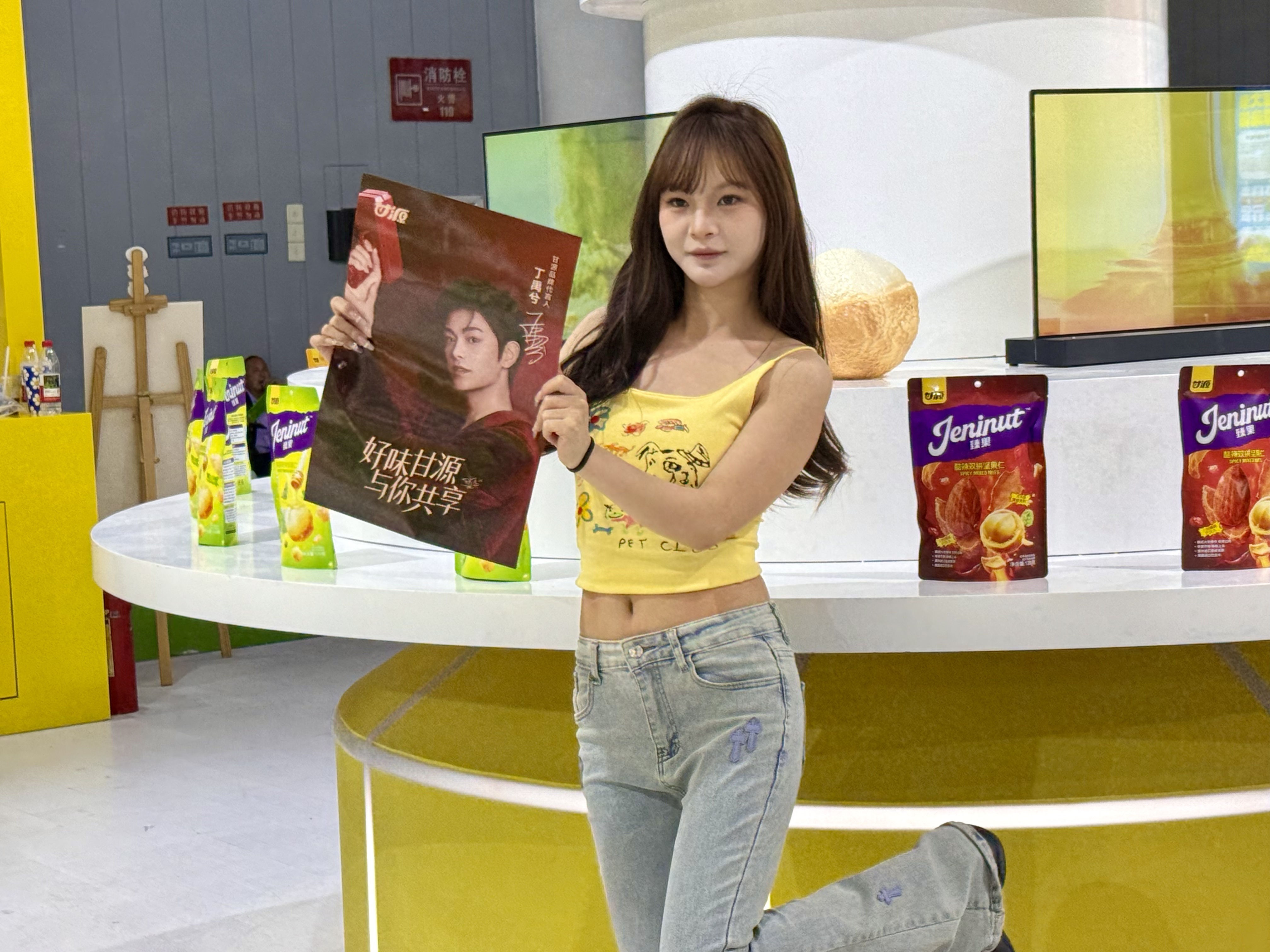 也有品牌打起了“粉丝牌”,利用代言人的超高人气引流。聚焦豆类炒货、坚果果仁和谷物酥类的甘源,1月初官宣丁禹兮担任品牌代言人。不少丁禹兮的粉丝到品牌展厅打卡,也成为本届糖酒会一道亮眼的风景线。