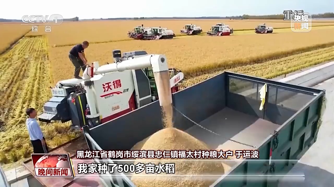 黑龙江省鹤岗市绥滨县忠仁镇福太村种粮大户 于运波:我家种了500多亩水稻,今年现在正在收获中,产量比去年一垧地增加半吨。