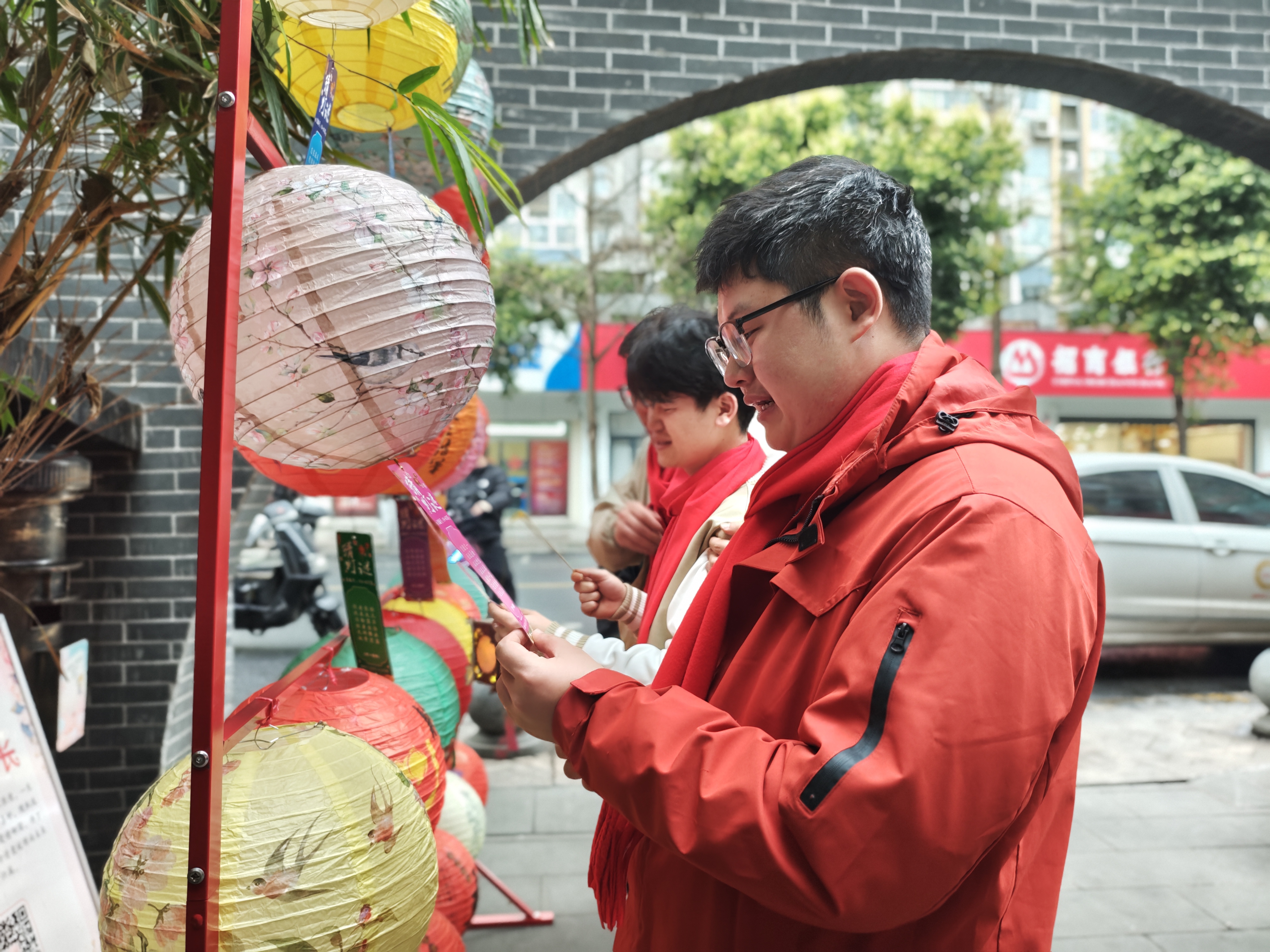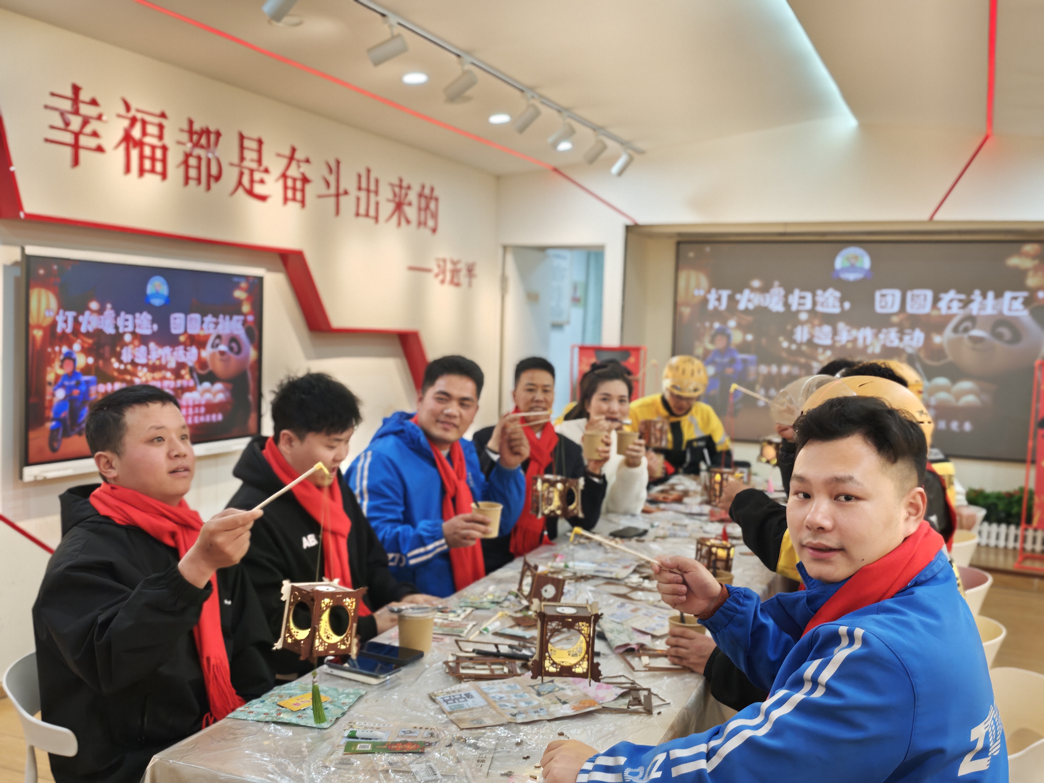 元宵佳节将至,为弘扬中华优秀传统文化,传递对新就业形态劳动者的关怀与尊重,2月28日,由成都市锦江区委社会工作部、区总工会指导,锦江区牛市口街道党工委主办,街道总工会与莲花社区党委联合承办的“灯火暖归途,团圆在社区”非遗手作主题活动,在“小牛哥·刹一脚”爱心智慧驿站温暖举行。20余名平日里穿梭于城市大街小巷的“小牛哥”志愿者齐聚一堂,做灯笼、猜灯谜、品汤圆,在温馨祥和的氛围中共度佳节。