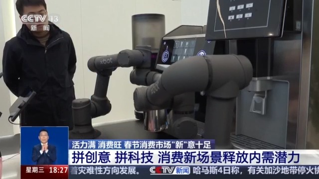 在浙江嘉兴乌镇,AI交互成了景区的流量密码。游客可以体验AI摄影、机械臂写“福”,更有春晚“同款”扭秧歌机器人给游客拜年。乌镇互联网科技馆的“新质互联——数字艺术展”以人工智能为核心,13个互联网场景应用展项,让游客在科技中感受年味。