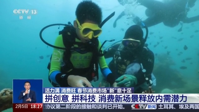 在三亚蜈支洲岛景区,创意十足的潜入海底移植珊瑚、火烈鸟品牌餐厅、直升机环岛游等项目,带火亲子游消费新场景,春节假期,蜈支洲岛景区的日均接待量近两万人次。