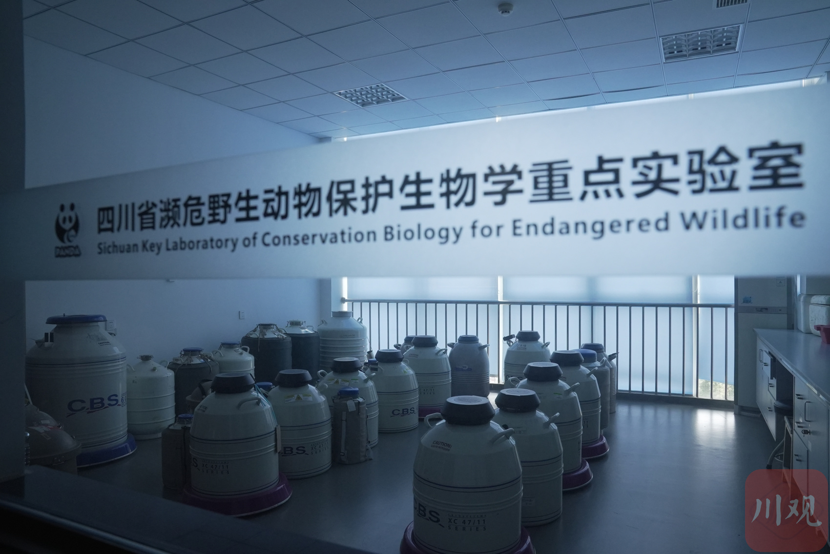 四川省濒危野生动物保护生物学重点实验室内的大熊猫基因资源库。