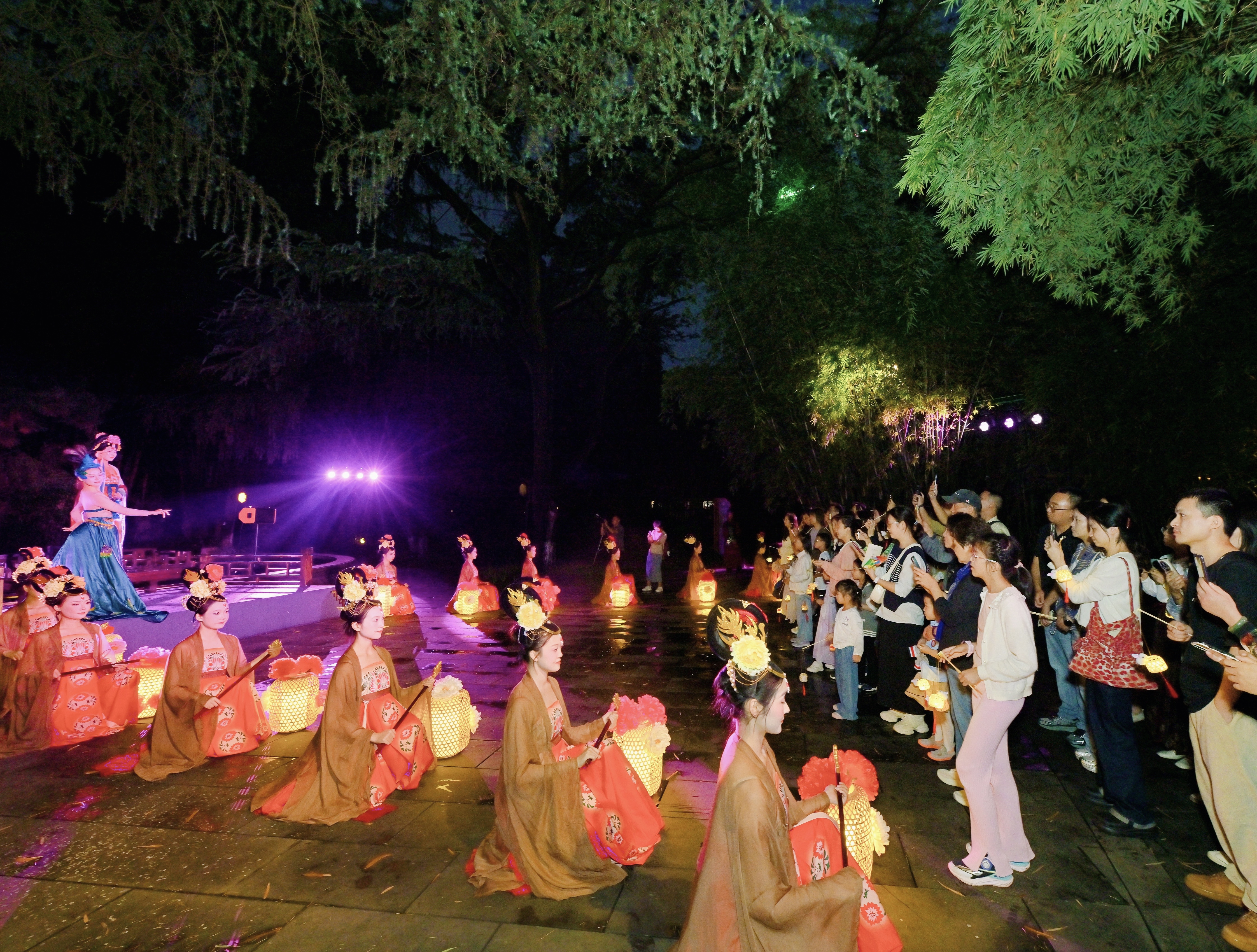 9月28日晚,“望江梦华·薛涛吟”公园实景沉浸式夜游在成都市望江楼公园重磅首演。南国孔雀啼鸣,侍女掌灯而舞,观众随诗画入梦,走进唐朝“女校书”薛涛富有传奇色彩的一生,开启一场穿越时空的沉浸式漫游。