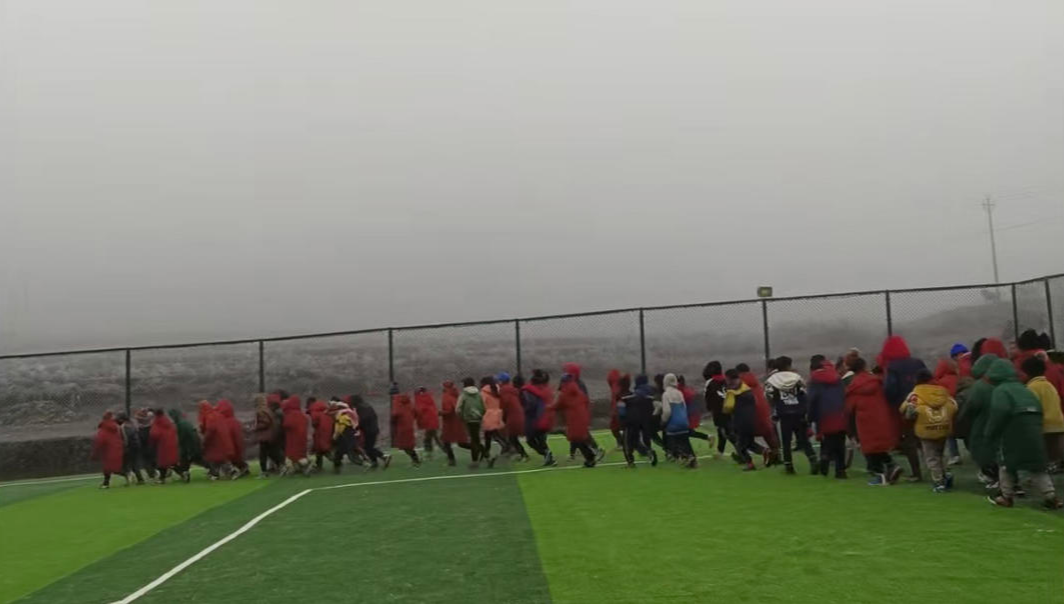 清晨的大凉山,薄雾蒙蒙下,在校长曲比史古有力地喊号声中,一群孩子身穿着厚厚的棉衣,在新建的绿茵球场上一圈又一圈地跑着。