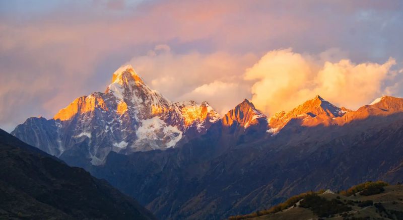 四姑娘山则是另一番景象。它地处青藏高原东缘的松潘—甘孜造山带核心,保存了全球规模最大的三叠系“西康群”浊积岩复理石建造和典型的西康式褶皱。四姑娘山拥有青藏高原东缘最典型的极高山群,也是中国现代冰川的最东缘分布区,是全球气候变化研究的敏感区和关键节点。此外,超过3700米的垂直高差,形成了从干旱河谷到森林、草甸再到冰川的完整垂直带谱,且与大熊猫栖息地世界自然遗产重叠,实现了地质遗迹、生物多样性与文化遗产的高度融合。