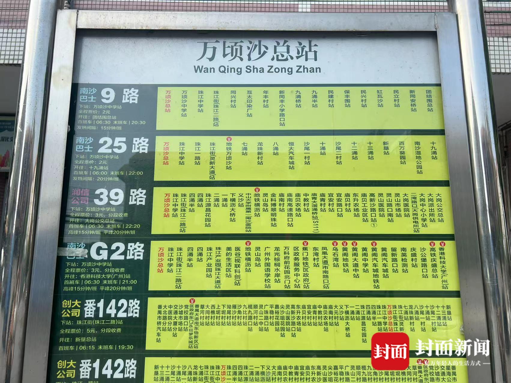 南沙巴士9路站牌 封面新闻记者 杨峰 摄