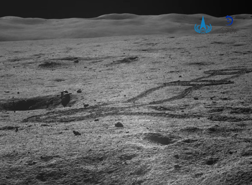 △嫦娥四号着陆器监视相机C拍摄的着陆点南侧月球背面图像,巡视器将朝此方向驶向月球表面。