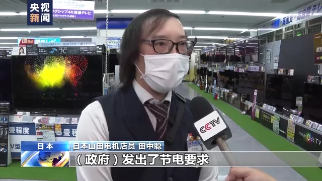 日本山田电机店员 田中聪:(政府)发出了节电要求,现在我们的电视展示区只把十分之一的电视打开。当有客人想要观看,想要体验的时候,我们才把电视的电源打开,这是我们正在采取的节电措施。