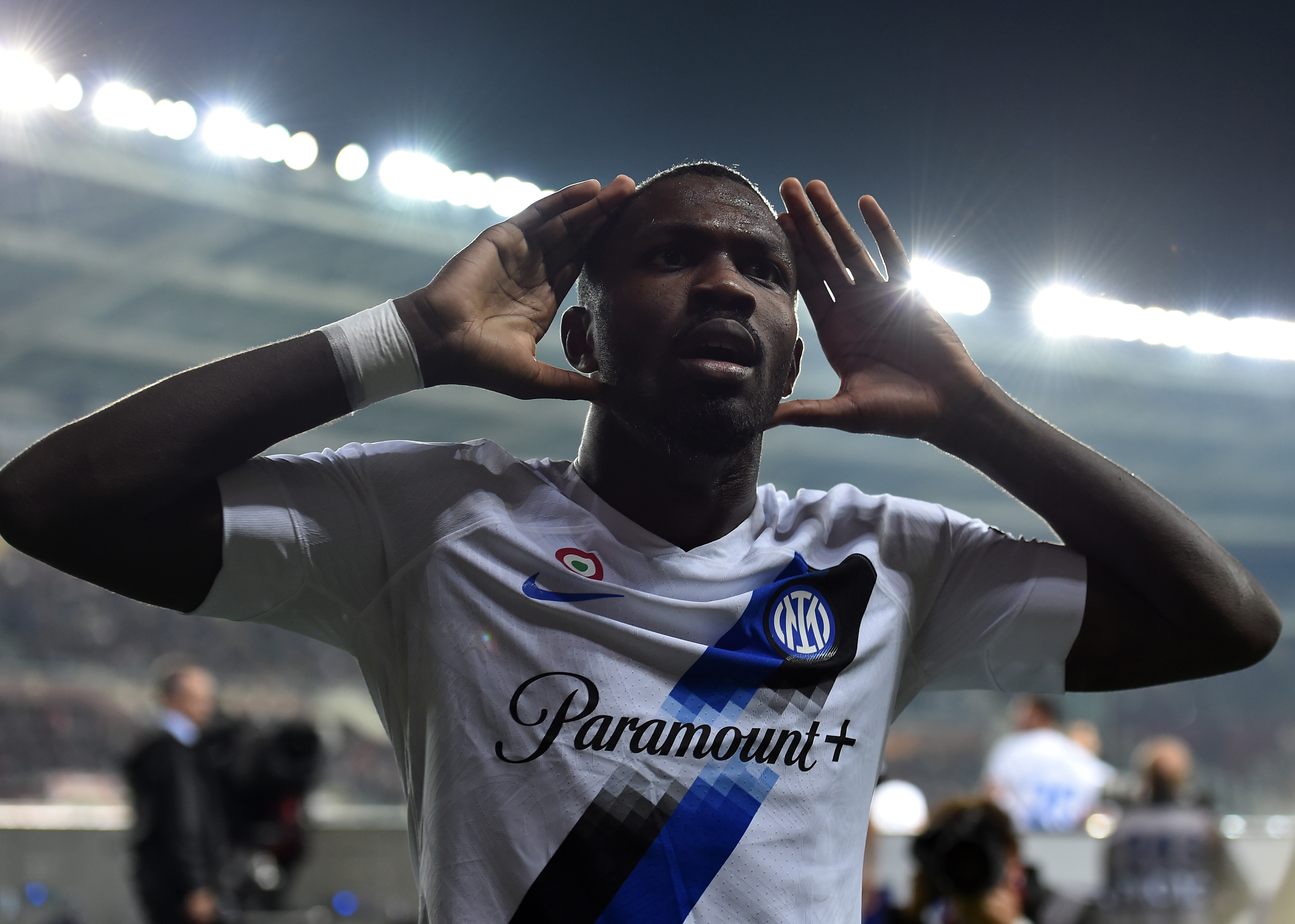 10月21日,国际米兰队球员图拉姆在比赛中进球后庆祝。新华社发(费德里科·塔尔迪托 摄)
