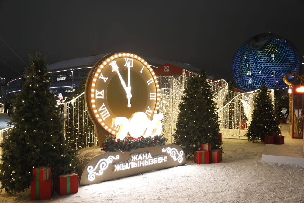 这是2024年12月18日在哈萨克斯坦首都阿斯塔纳拍摄的迎接2025年的灯饰。新华社发(奥斯帕诺夫摄)