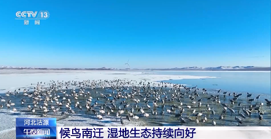 在河北坝上闪电河国家级湿地公园,很多南迁途中的天鹅、白枕鹤、灰鹤等候鸟在这里停留休整。最近随着气温下降,湿地公园湖面逐渐结冰,候鸟们也陆续飞离了沽源县,继续南迁。