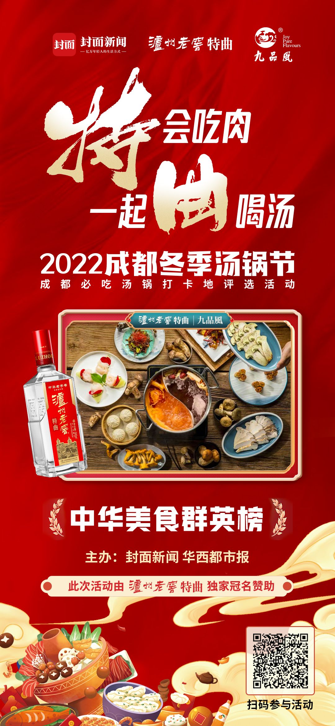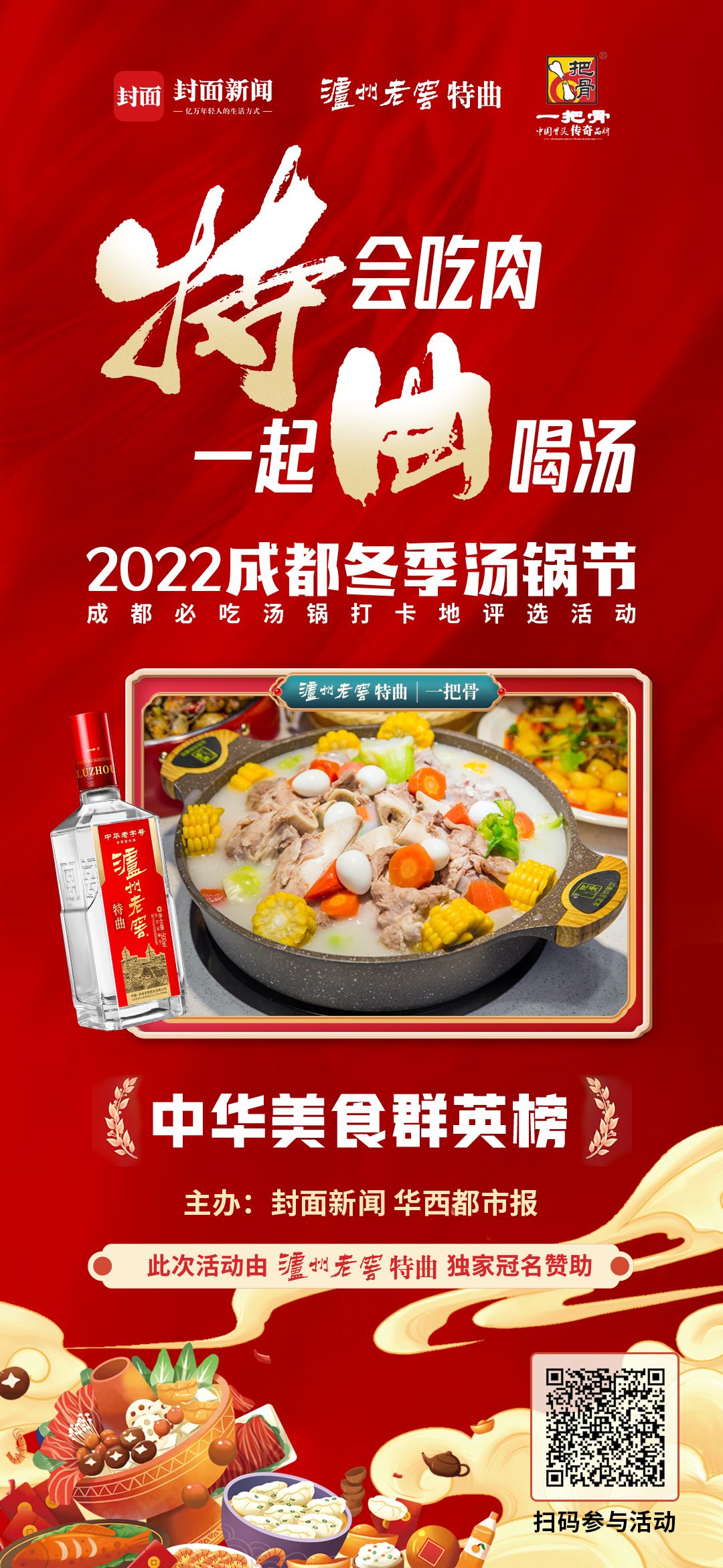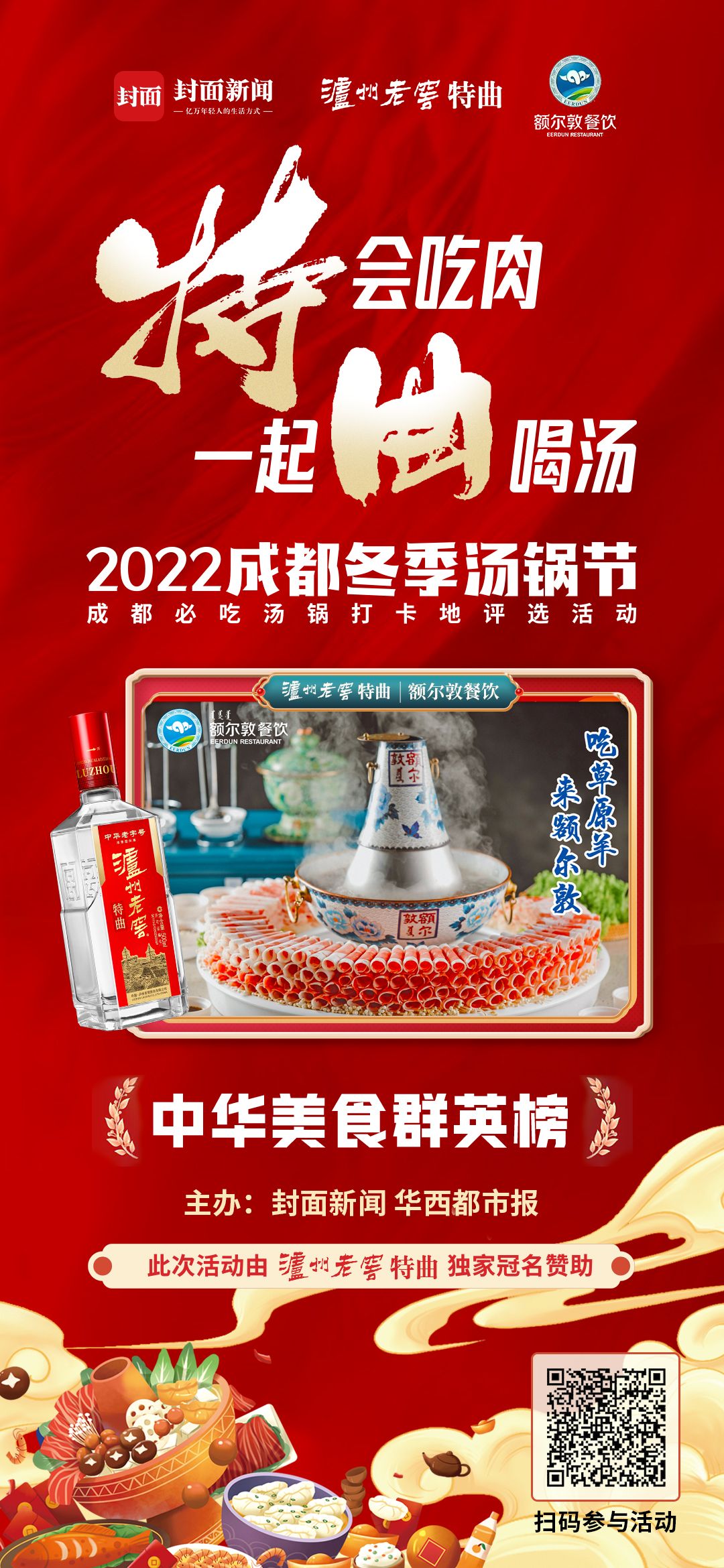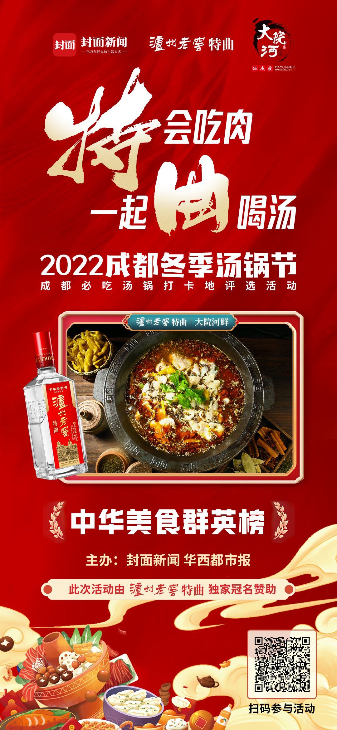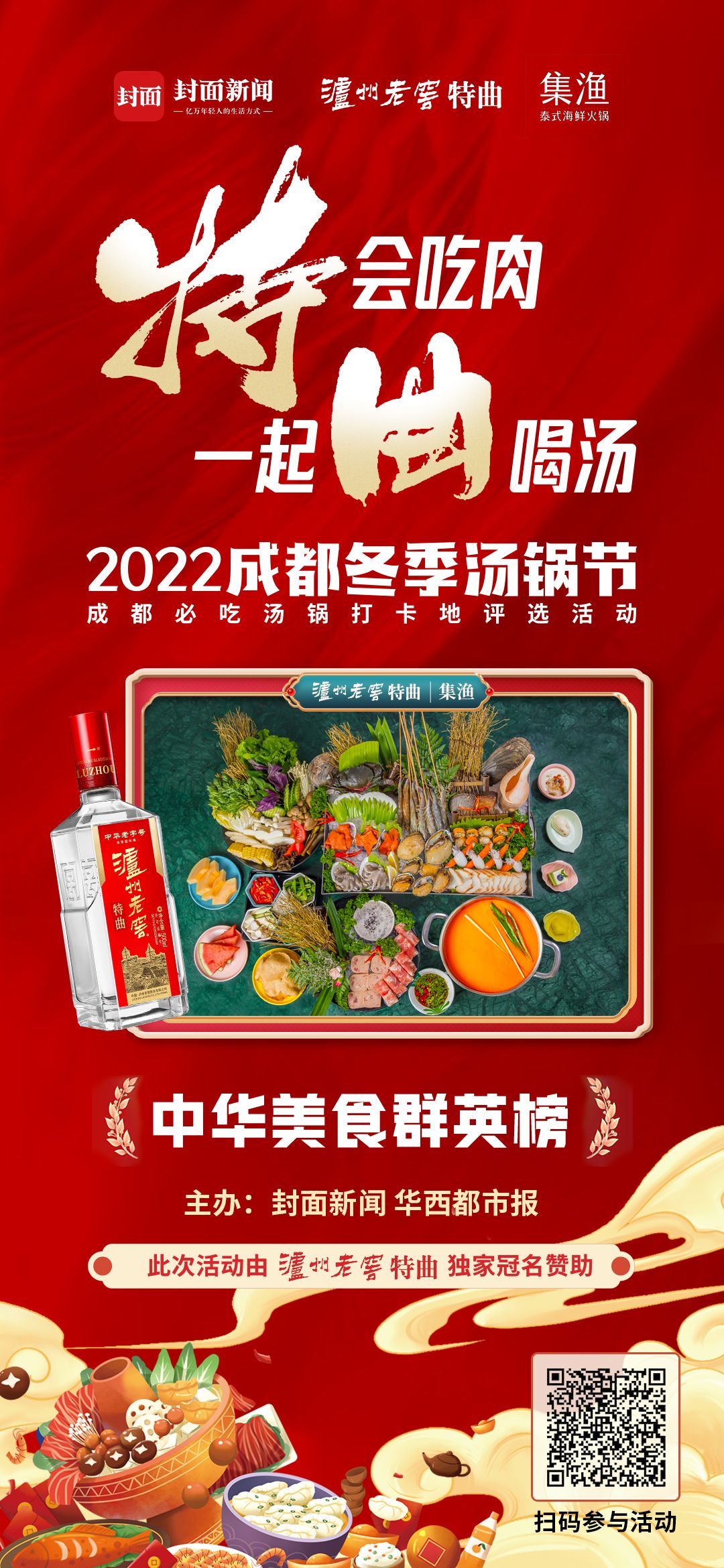 由泸州老窖特曲独家冠名赞助,封面新闻、华西都市报主办的2022成都冬季汤锅节暨成都必吃汤锅打卡地评选活 动已经火爆开启,成都各大汤锅品牌纷纷参与其中,并推出了各种优惠活动,欢迎市民前往打卡。