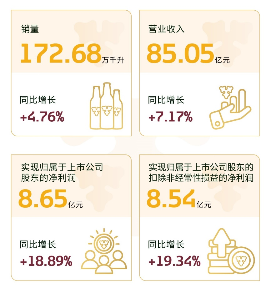8月16日,重庆啤酒发布的2023年半年报显示,2023年上半年,重庆啤酒实现啤酒销量172.68万千升,比上年同期增长4.76%;实现营业收入85.05亿元,比上年同期增长7.17%;实现归属于上市公司股东的净利润8.65亿元,比上年同期增长18.89%;实现归属于上市公司股东的扣除非经常性损益的净利润8.54亿元,比上年同期增长19.34%。