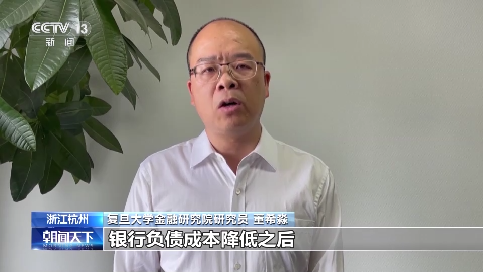 复旦大学金融研究院研究员 董希淼:存款利率下调之后,对银行来说有助于保持息差的稳定,银行负债成本降低之后,传递到资产端,有助于推动贷款利率稳中有降,进而提升银行稳健发展能力和服务实体经济能力。