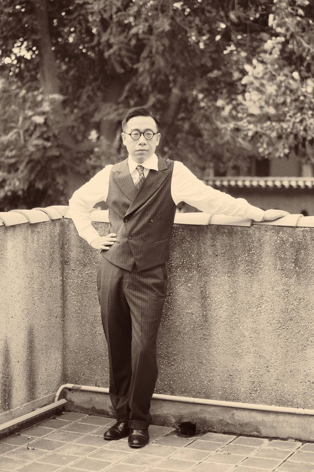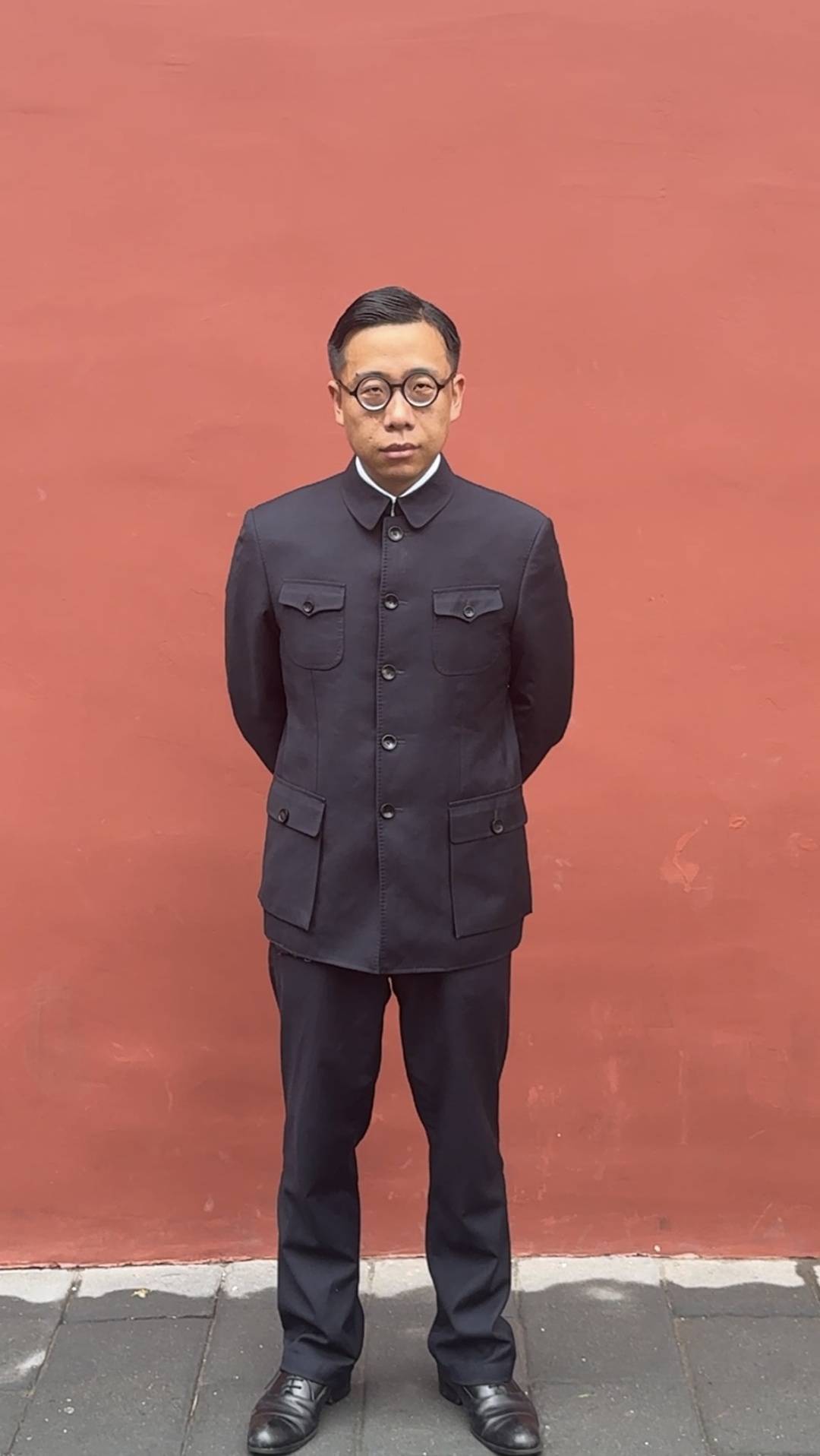 当他身着中山装、戴上眼镜,在北京的故宫、颐和园、北海公园或是胡同里头闲逛时,总有人回头注视,然后留下惊讶的表情包。