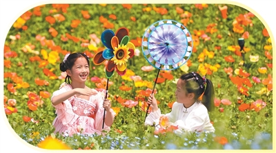小朋友在江苏省句容市白兔镇伏热花海玩耍,乐享春假。 钟学满摄