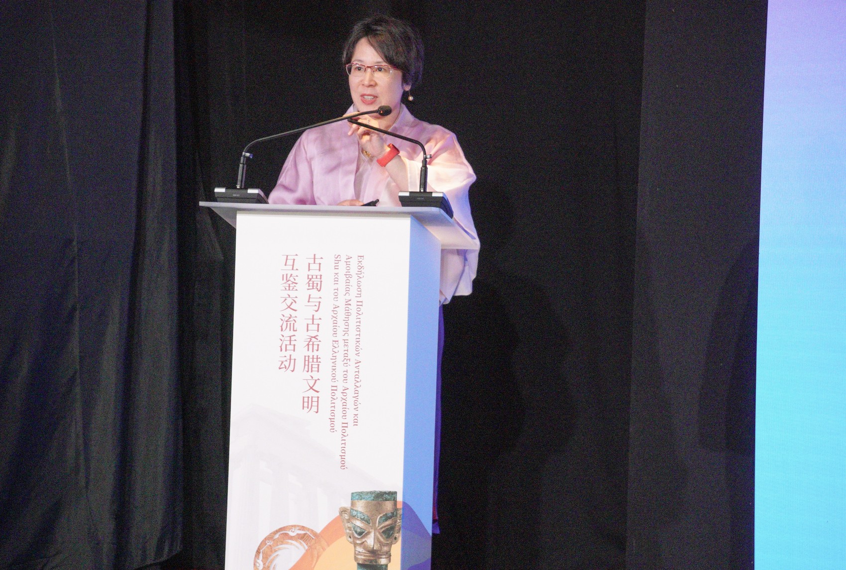 北京时间5月13日下午,古蜀与古希腊文明互鉴交流活动在希腊雅典举行。中国古迹遗址保护协会数字遗产专委会主任贺艳以“数字阐释增进文明交流互鉴”为主题开展分享。
