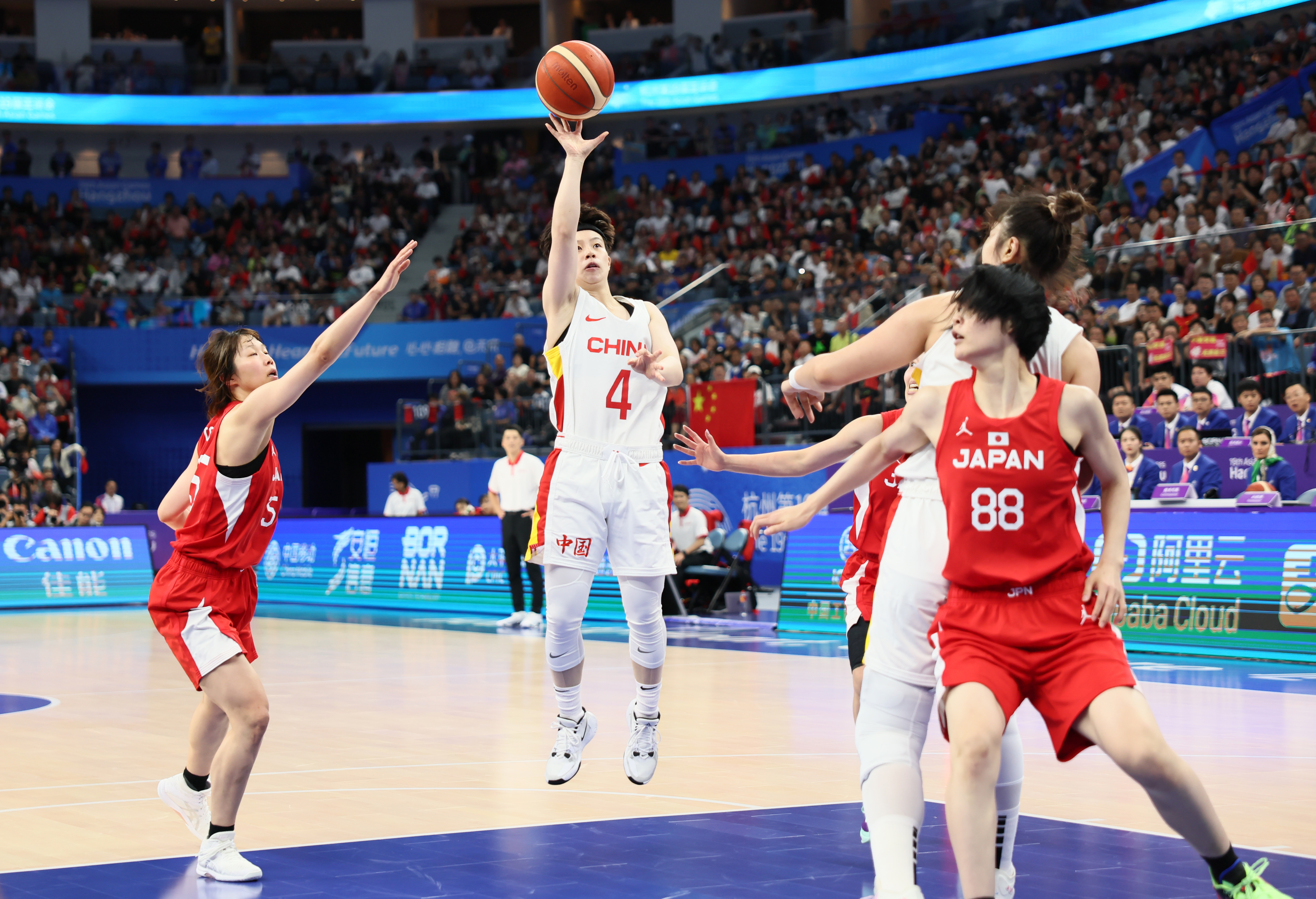 决赛开场,两队球员都略显紧张,中国队几次中投失手,日本队数次快攻也未能建功。依靠韩旭在内线的牵制,黄思静连续命中2记远投,李梦突破打成“2+1”,中国队打出17:7的开局。面对身材更高大的中国姑娘,日本球员通过不断突破传球创造得分机会。首节,中国队26:16领先对手。