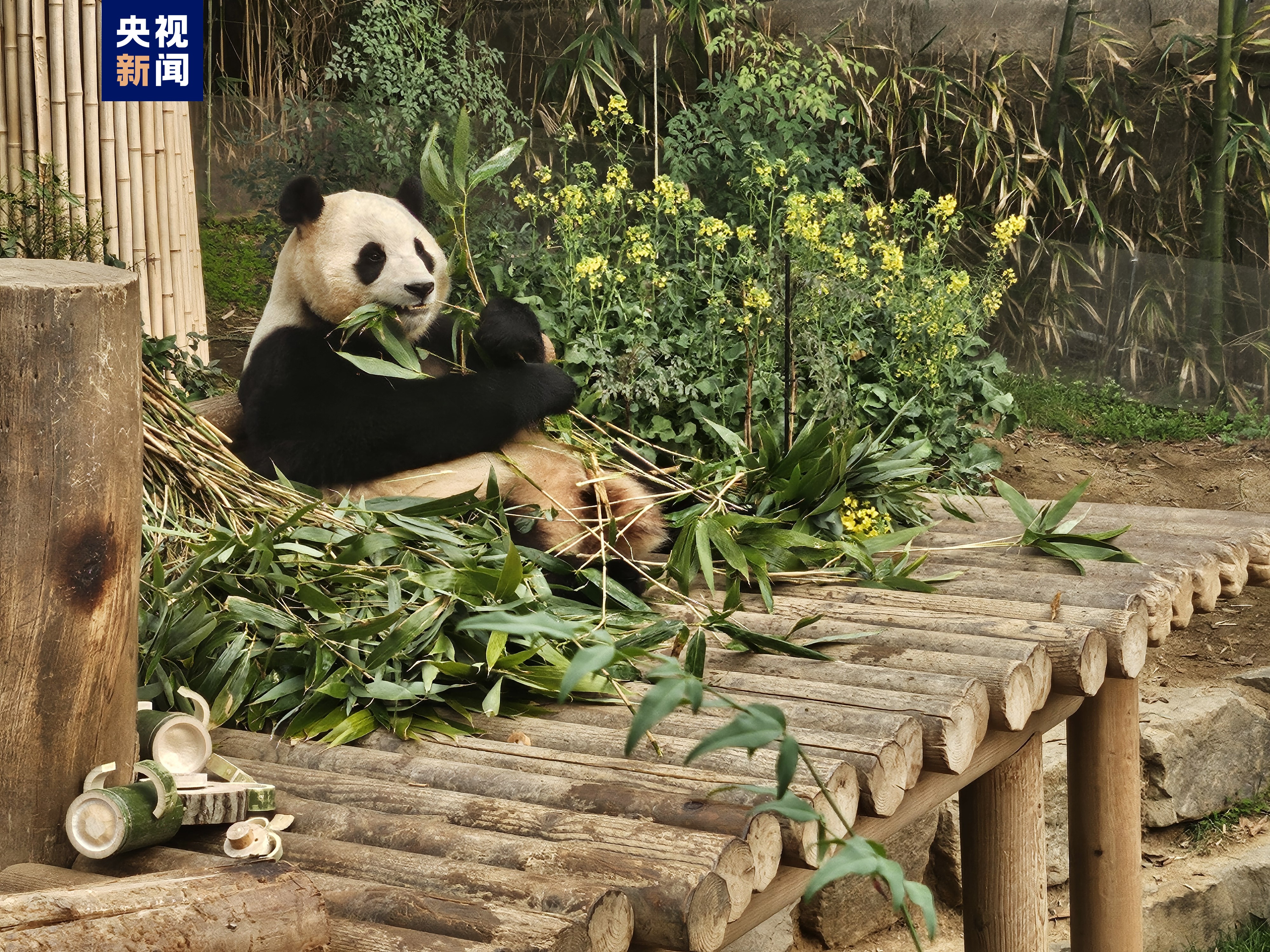 当天,“福宝”的饲养员姜哲远、宋永宽为“福宝”准备了爱心窝头和竹子制作的“宝家族”全家福,还有寄托着两位饲养员美好祝福的油菜花束,让“福宝”最后一个与韩国观众见面的日子充满了爱与祝福。
