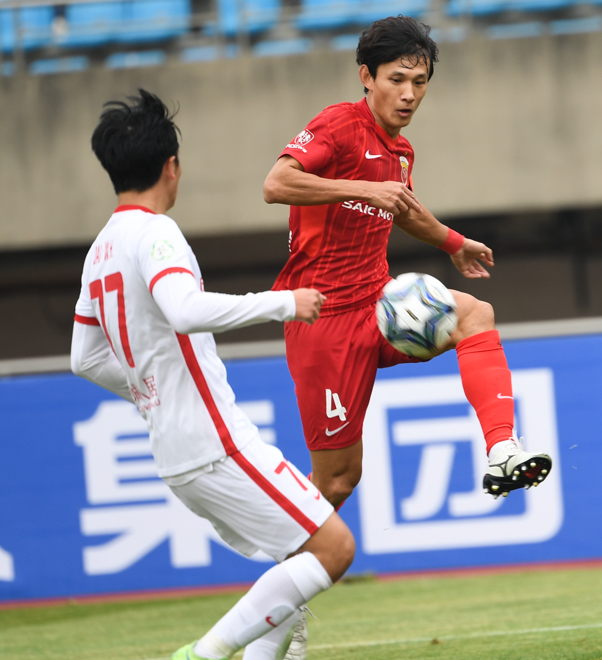 1月5日,上海海港队球员王燊超(右)在比赛中控球。新华社记者 季春鹏 摄