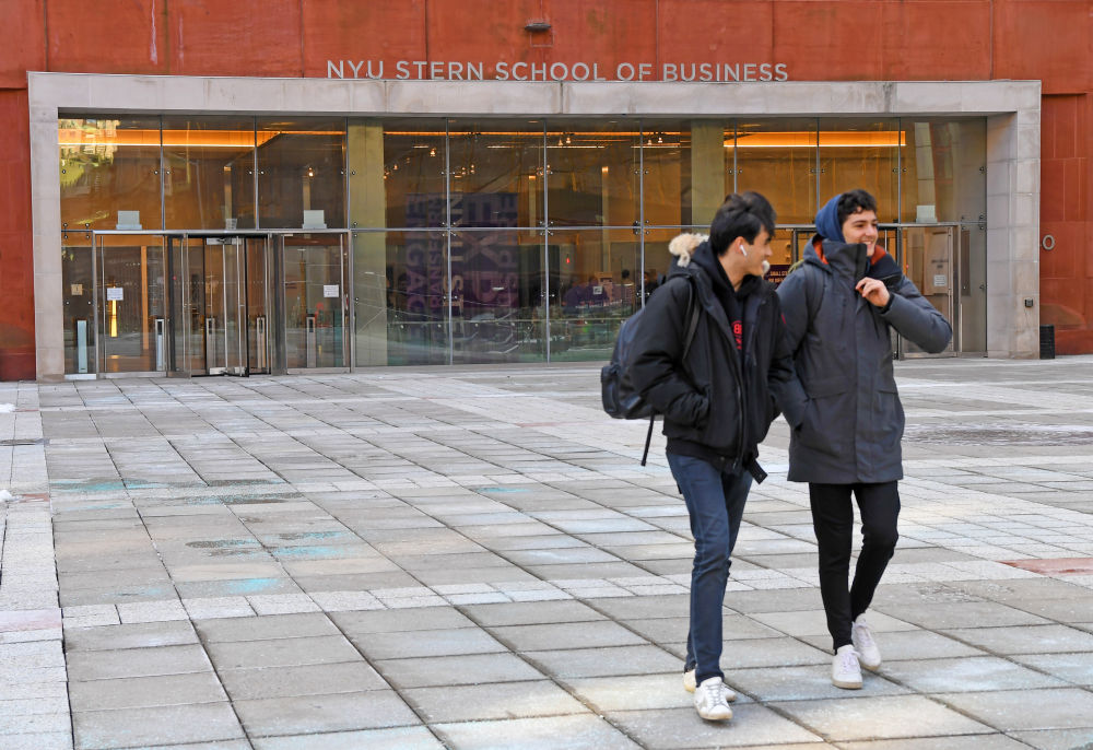2019年12月19日,在美国纽约,学生从纽约大学商学院门前走过。(新华社记者李睿摄)