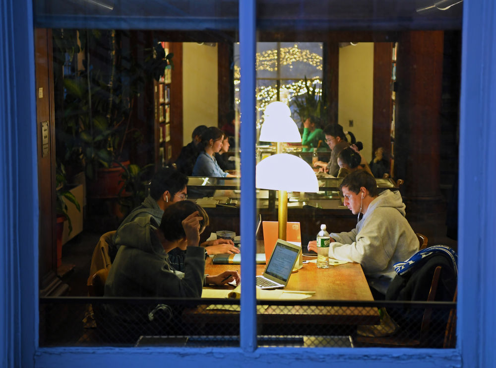 图为2019年12月7日,在美国纽约,哥伦比亚大学学生在图书馆自习。(新华社记者李睿摄)