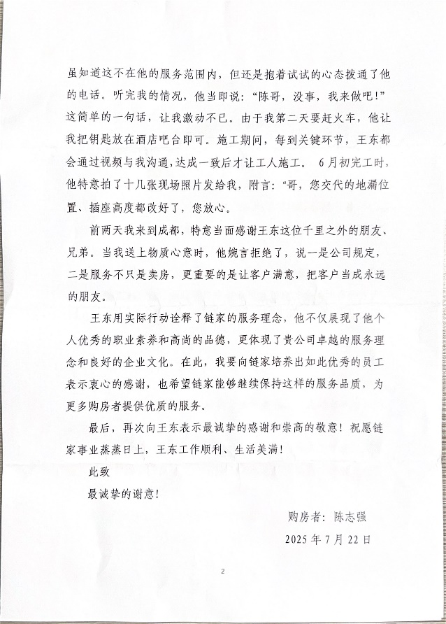 一纸感谢,一份信赖。这些来自客户的真挚认可,不仅是链家经纪人专业、负责、有温度服务的缩影,更折射出房产经纪行业正在不断提升专业标准与服务温度,迈向更规范、更透明、更注重体验的新阶段。