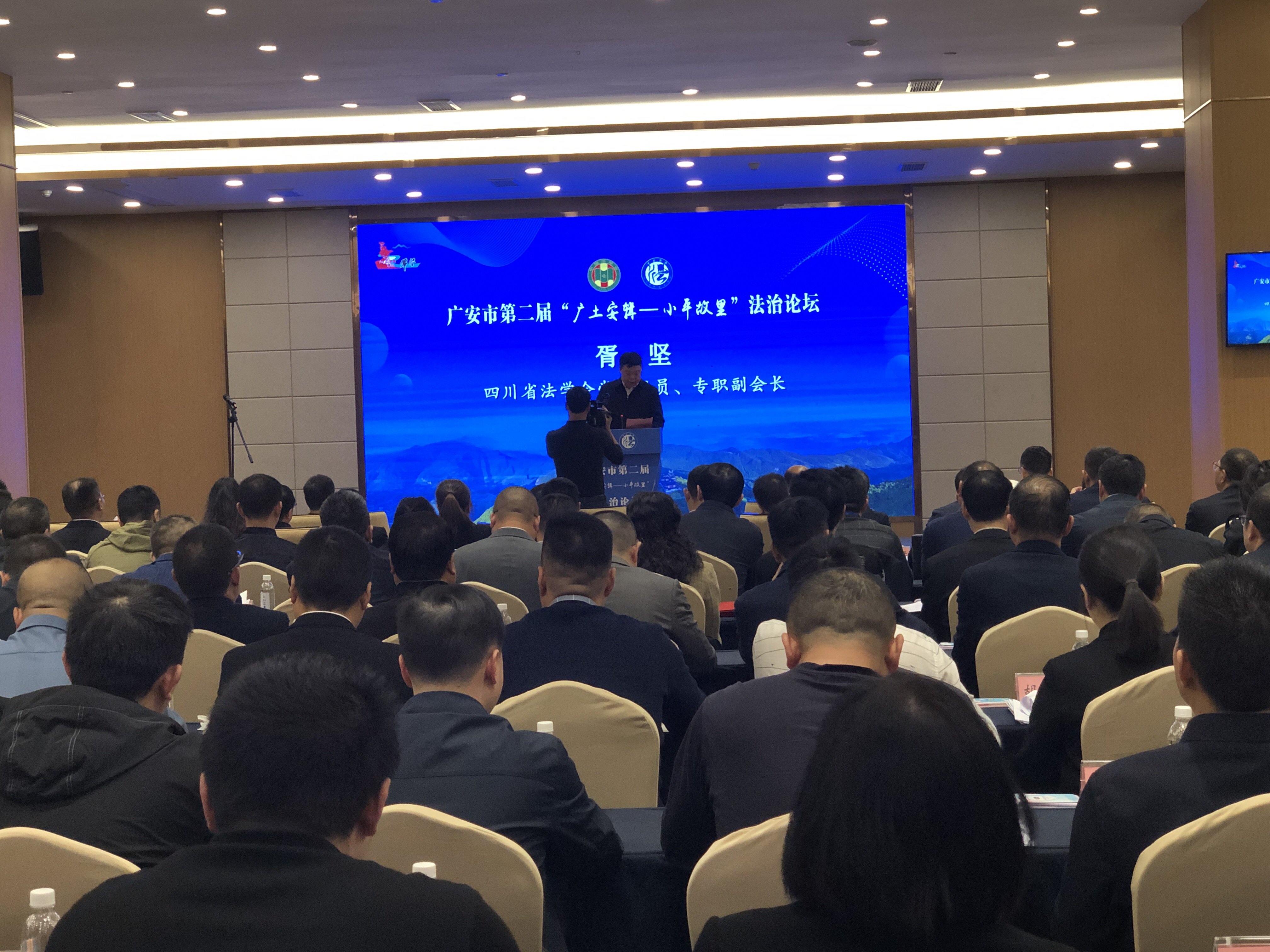 11月8日,以“同城融圈的法治保障”为主题的四川省广安市第二届“广土安辑——小平故里”法治论坛在华蓥市召开。四川省法学会专职副会长胥坚、四川省社会科学院副院长郑泰安,以及来自重庆市渝北区、合川区、垫江县、两江新区,四川省成都市、广安市、德阳市、广元市、南充市、巴中市、达州市、资阳市等地法学法律工作的领导、专家130余人参加论坛。