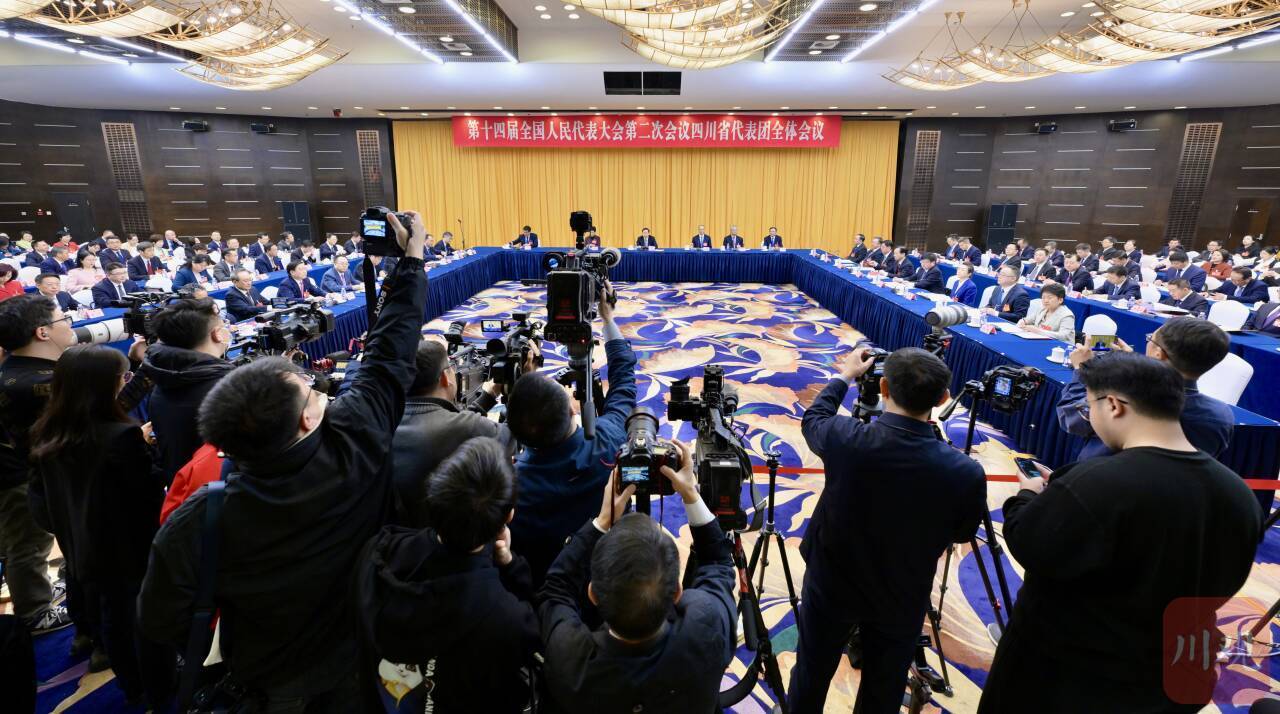 3月10日上午,十四届全国人大二次会议四川代表团在驻地举行全体会议,继续审议全国人大常委会工作报告、最高人民法院工作报告、最高人民检察院工作报告。根据大会安排,本次会议向中外媒体开放。