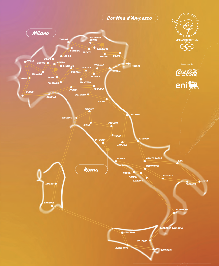 △米兰冬奥会火炬在意大利境内的传递路线图。图源:米兰冬奥组委